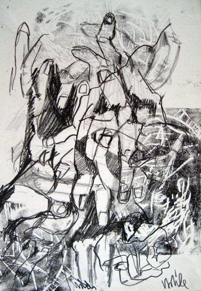 Mimmo Nobile sviluppa tutte le possibilità, mescolando il segno delle caverne con sonorità visiva verso una direzione nuova e virile del disegno. È un disegnatore assoluto, perché per lui il disegno non ha limiti, parla tutte le lingue ed è lo spirito del pensiero creativo portato sulla carta. La pratica del disegno, a matita, ad inchiostro, a carboncino, è testimonianza di una continua ricerca, di un esercizio che prosegue indipendentemente dalla pittura e che assume un suo originale sviluppo.