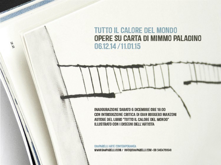 Mimmo Paladino (Paduli, 1948) è tra i più noti artisti italiani ed affermato artista internazionale, già attivo nella collaborazione con poeti, scrittori e musicisti. La mostra presenta, una serie di opere su carta realizzate dall'artista interpretando prose in forma poetica, di Gian Ruggero Manzoni (San Lorenzo di Lugo, 1957) scrittore e critico d'arte, anch'egli già coautore con celebri artisti, in un lavoro d'insieme che è stato pubblicato nel libro “Tutto il calore del mondo” edito da Skira nel 2013.