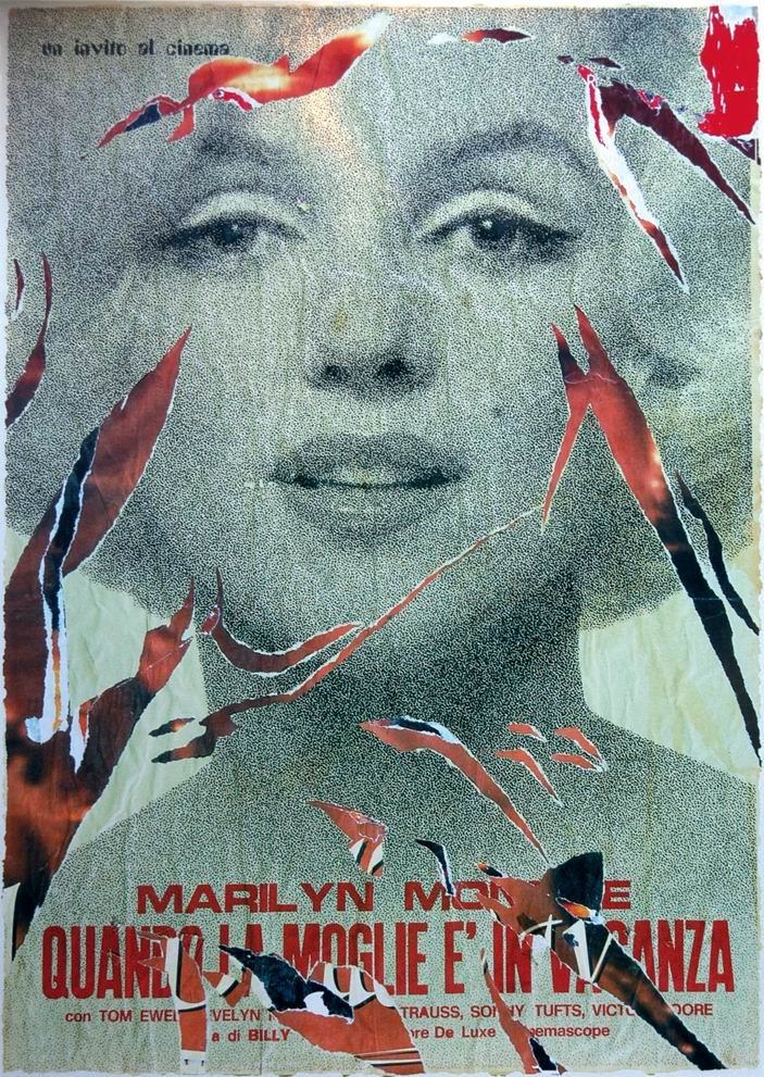 I “décollages”, immagini di cartelloni cinematografici lacerati, sono proposti in mostra grazie alla presenza di alcuni pezzi unici e numerose serigrafie a tiratura esclusiva di straordinaria intensità che esprimono il grande amore dell’artista per Marilyn e il mondo del cinema.