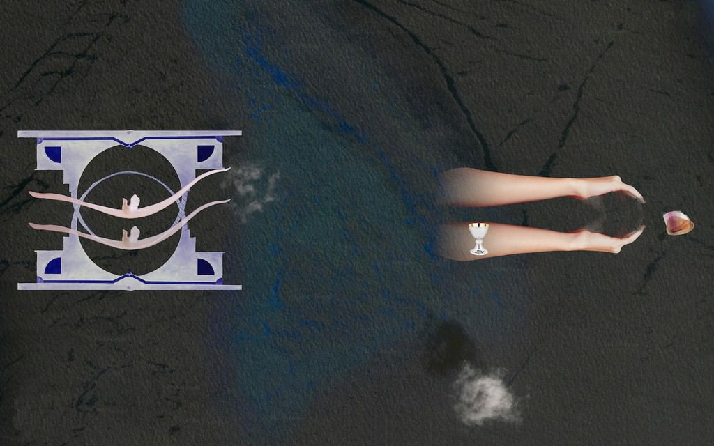tra questi si vedono interagire, governati da misteriose formule, calici stilizzati, oggetti che ricordano i Tools e gesti manuali, in