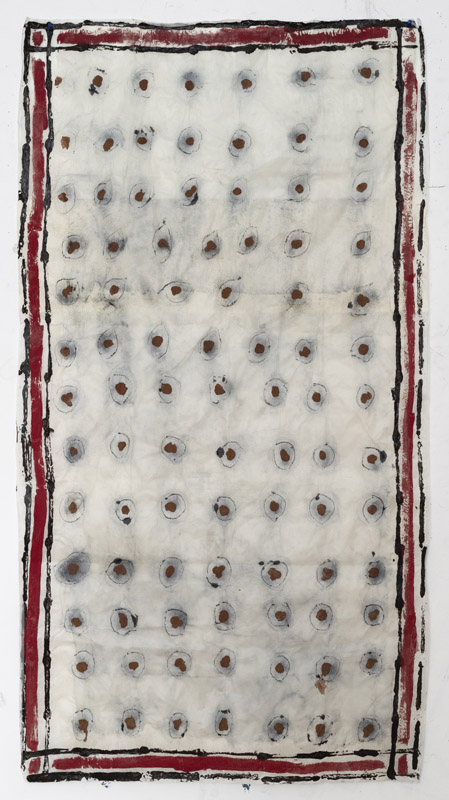 Le opere di Isabella Ducrot formano dunque una Triade: un corpo di chine su carta si richiamano al mistero dell'amore terreno come esperienza del divino, al centro un arazzo di lino in cui la parola "DIO" si ripete riducendosi fino a diventare la sola vocale "O" e infine una "Ripetizione" su carta, in cui il cerchio protagonista senza tregua diventa motore di un universo che dispone di nuove regole estetiche.