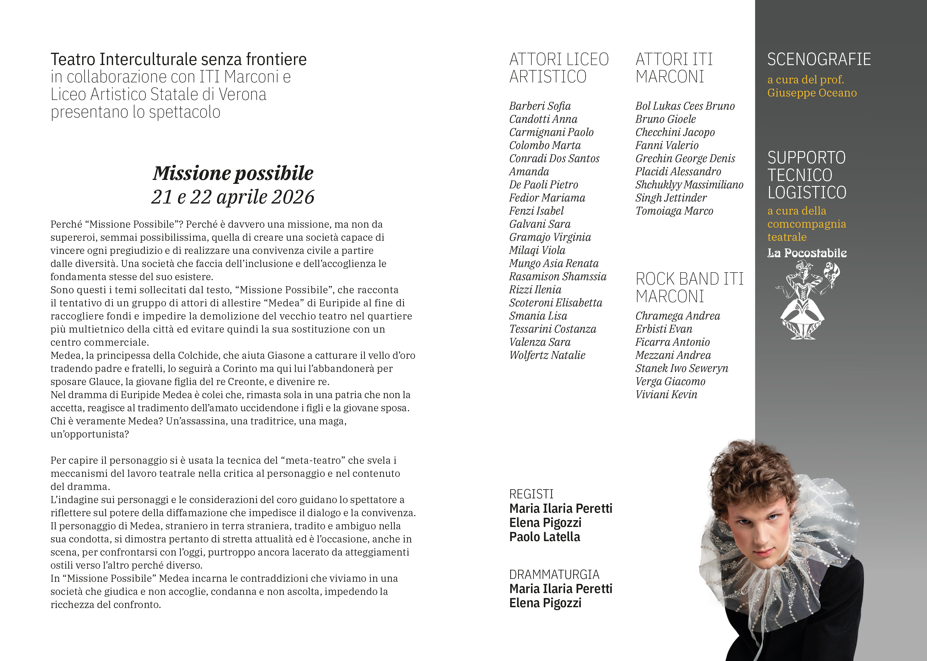 Spettacolo teatrale degli studenti del Liceo Artistico e dell’ITI Marconi di Verona: una rilettura contemporanea della Medea, tra meta-teatro e musica dal vivo, che racconta il tentativo di salvare un teatro in un quartiere multietnico, affrontando temi di inclusione, pregiudizio e convivenza civile