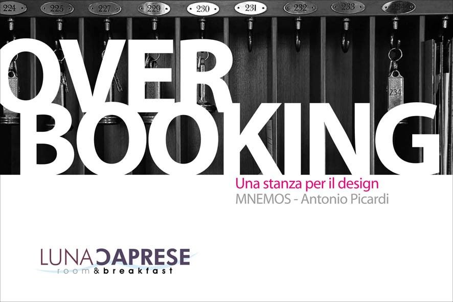 Il progetto Overbooking intende proporre una possibile indagine sulle nuove strade del design e dell’artigianato di qualità con una serie di piccole esposizioni nei locali di Luna Caprese, a diretto contatto con chi è di passaggio per la città e vuole ricavarne una prospettiva diversa: meno folkloristica, ma più vicina alla vita reale. La doppia personale di Mnemos ed Antonio Picardi costituisce solo il primo appuntamento di una serie di mini-presentazioni. Per i prossimi appuntamenti MoonboW prenderà in considerazione i portfolio di chi volesse proporre il proprio lavoro ad un pubblico più vasto ed eterogeneo