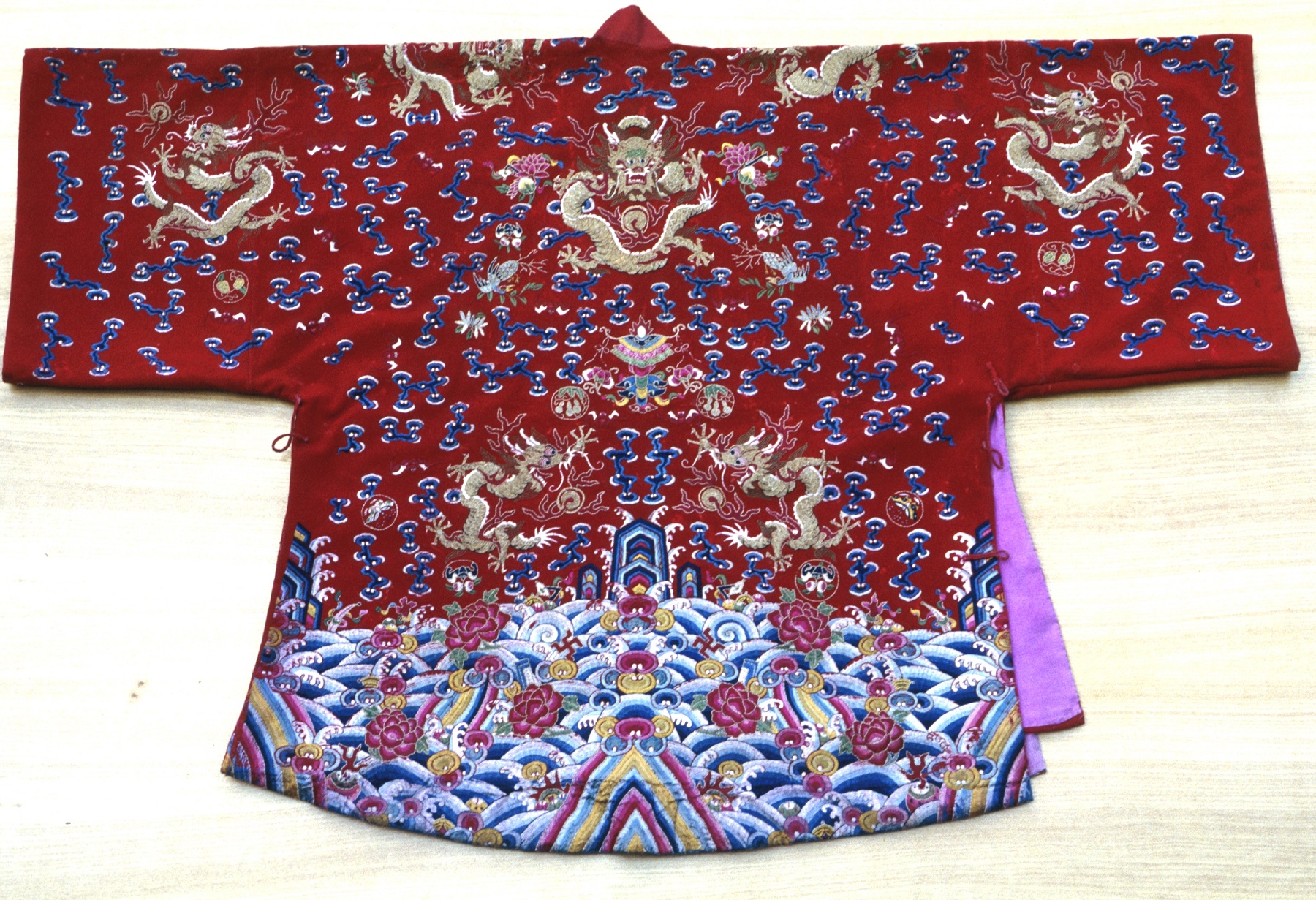 Sbirciando qua e là nel riallestimento, patrocinato dal Comune di Parma e sostenuto anche da Coop, dalla Cina abbiamo un Longpao, abito di corte molto elegante, colore bordeaux, insieme a un abito lungo moderno azzurro. Un’altra novità è la sezione dedicata all’abbigliamento dei missionari utilizzato in Cina nei primi anni del secolo scorso: tra questi un abito Chang Pao e un copricapo. Dalla Sierra Leone un abito e una tunica con accessori vari: dagli oggetti magici a una roncola rituale, passando per una curiosa tabacchiera e una collana in cuoio. Ritroveremo calzature femminili tipiche del grande impero, le scarpette con tacco a zoccolo, oltre all’ornamento nuziale: collare in tubolare a sezione rettangolare la cui faccia superiore rappresenta due draghi (simbolo di fertilità maschile).