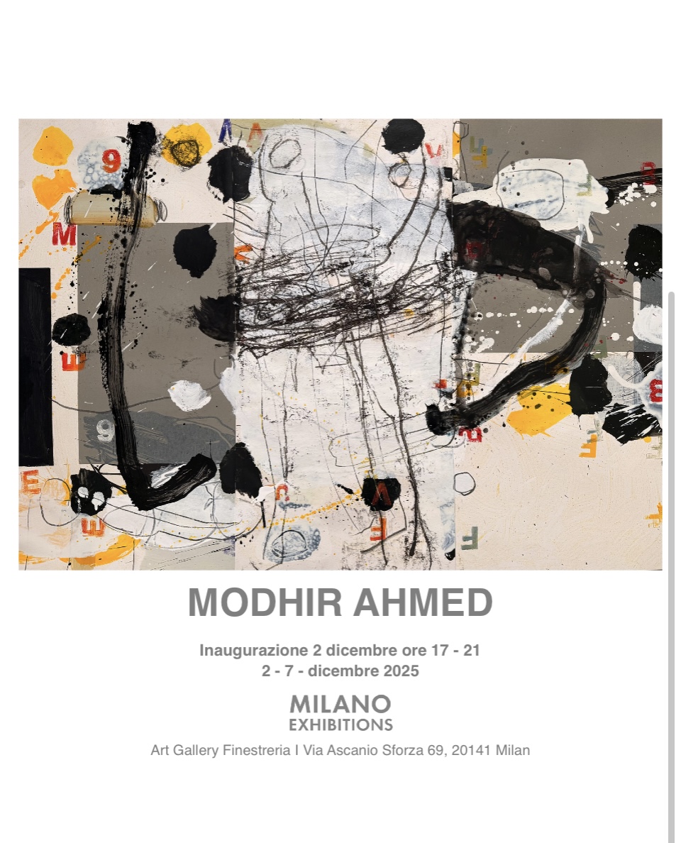 Modhir Ahmed presenta in questa occasione una selezione di nuove opere su carta, mai esposte prima, create in continuità con la sua profonda ricerca sulla struttura, il segno e la materia.