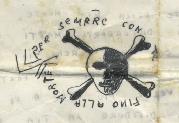 Per sempre con te fino alla morte gira attorno ad un disegno con l’ inquietante iconologia del pericolo, della perdita, dell’assenza: il teschio davanti alle tibie incrociate. Questa immagine diviene oggi, sulla lettera del padre, il marchio indelebile di un amore spezzato. Moira Ricci ha cominciato ad osservare il comportamento dell’uomo rimasto solo (vedovo), alla ricerca continua di un nuovo amore che spesso ha i connotati di quello perduto. L’artista, quindi, non solo registra quello che il padre fa dentro le mura di casa (suonare e cantare continuamente melodie d’amore) ma inizia a frequentare insieme a lui le balere dove scopre che i comportamenti di uomini e donne soli sono in tutto simili a quelli che si hanno in adolescenza, confermando che le varie fasi di innamoramento, di conquista, di abbandono sono sempre le stesse in ogni età e con qualsiasi storia alle spalle.