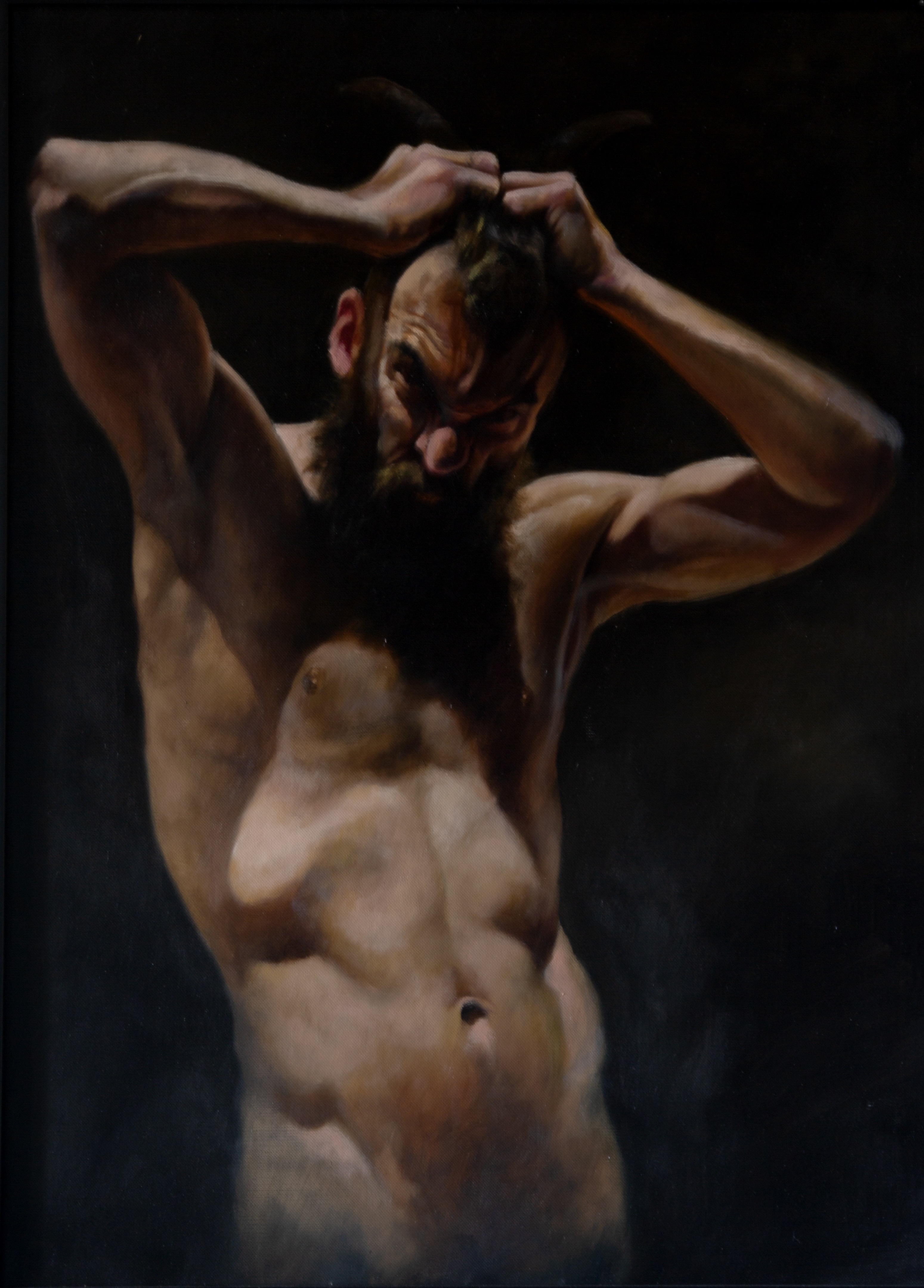 Un viaggio tra malinconia e surrealismo, l’arte di Alfredo Raimondi, in arte Mojo, ci trascina in un mondo onirico fatto di demoni, miti e figure caravaggesche, dove toni bruni e ombre profonde evocano la sua visione affascinante e decadente.