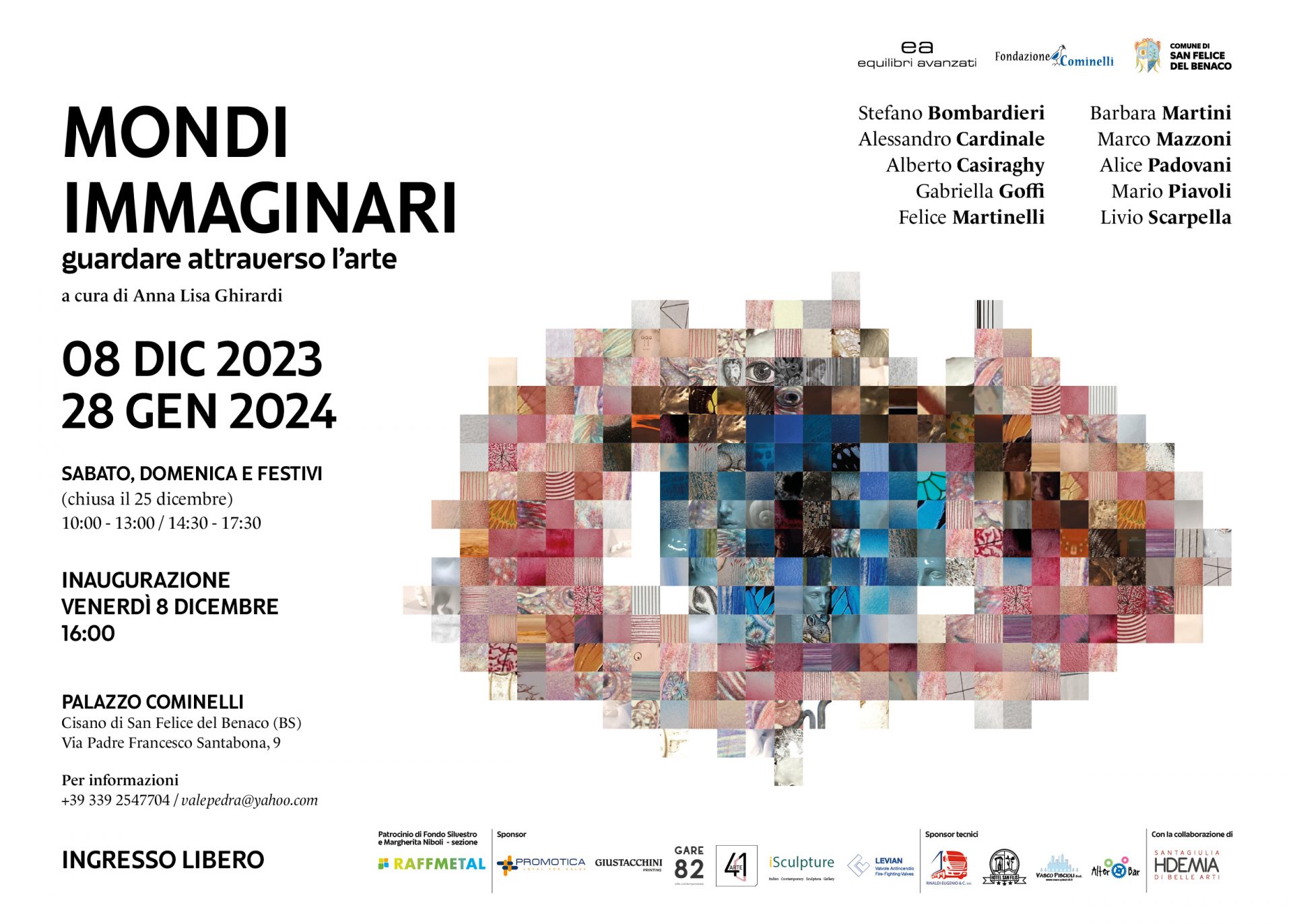 Nell’ambito della mostra saranno tenuti laboratori didattici in un progetto di inclusività, con il Patrocinio di Fondo Silvestro e Margherita Niboli sezione Raffmetal.