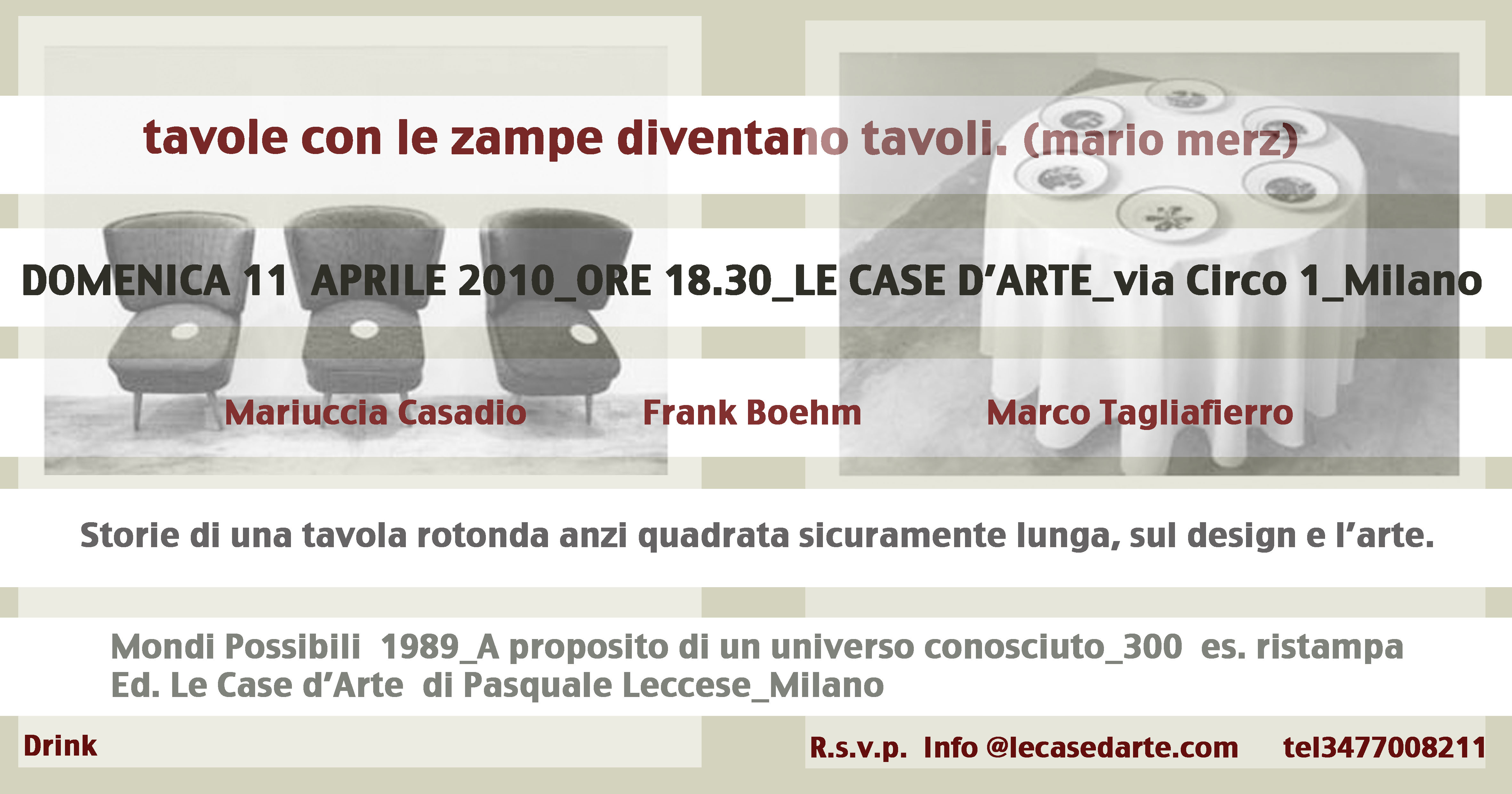 presentazione del raro libretto mondi possibili ed le cased arte 1989 e ristampato per l’occasione , incontro con Mariuccia Casadio e Franck Boehm su arte e design modera Marco Tagliafierro.