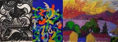 Tra le numerose opere presentate, saranno esposte: per Mondino la tecnica mista del 1968, "Spirale rosso bianco verde" , la tecnica mista del 1962 "Senza titolo" e l'olio su linoleum del 2004 "Turcatina cioccolattina"; per Nespolo, gli acrilici su tavola del 1975 "Guardando Morris", del 1977 "Cuba" e l'acrilico su tela del 1989 "Don't blame me"; infine tra le opere esposte per Salvo si potranno ammirare il "Paesaggio" e "S. Nicola Arcella", entrambe del 2002, oltre ad una vasta raccolta di acquerelli, realizzati quali illustrazioni del volume Cucinacrudele a cura di Nico Orengo.