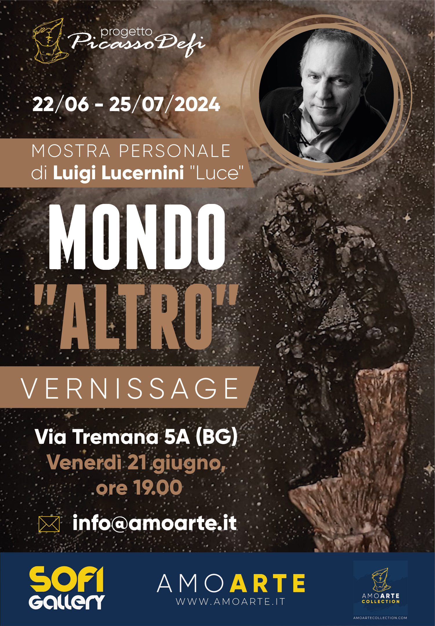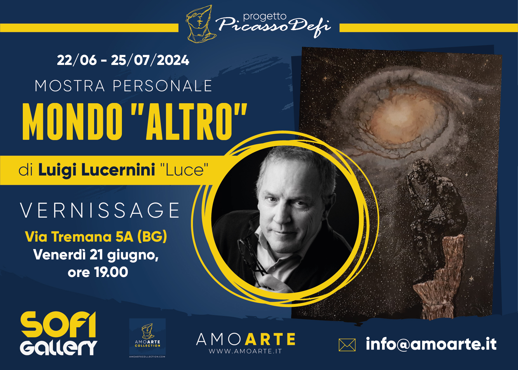 La mostra personale di Luigi Lucernini (nome d’arte “Luce”), Mondo altro inaugura venerdì 21 giugno ore 19.00 presso Sofi Gallery di Via Tremana 15 (BG).