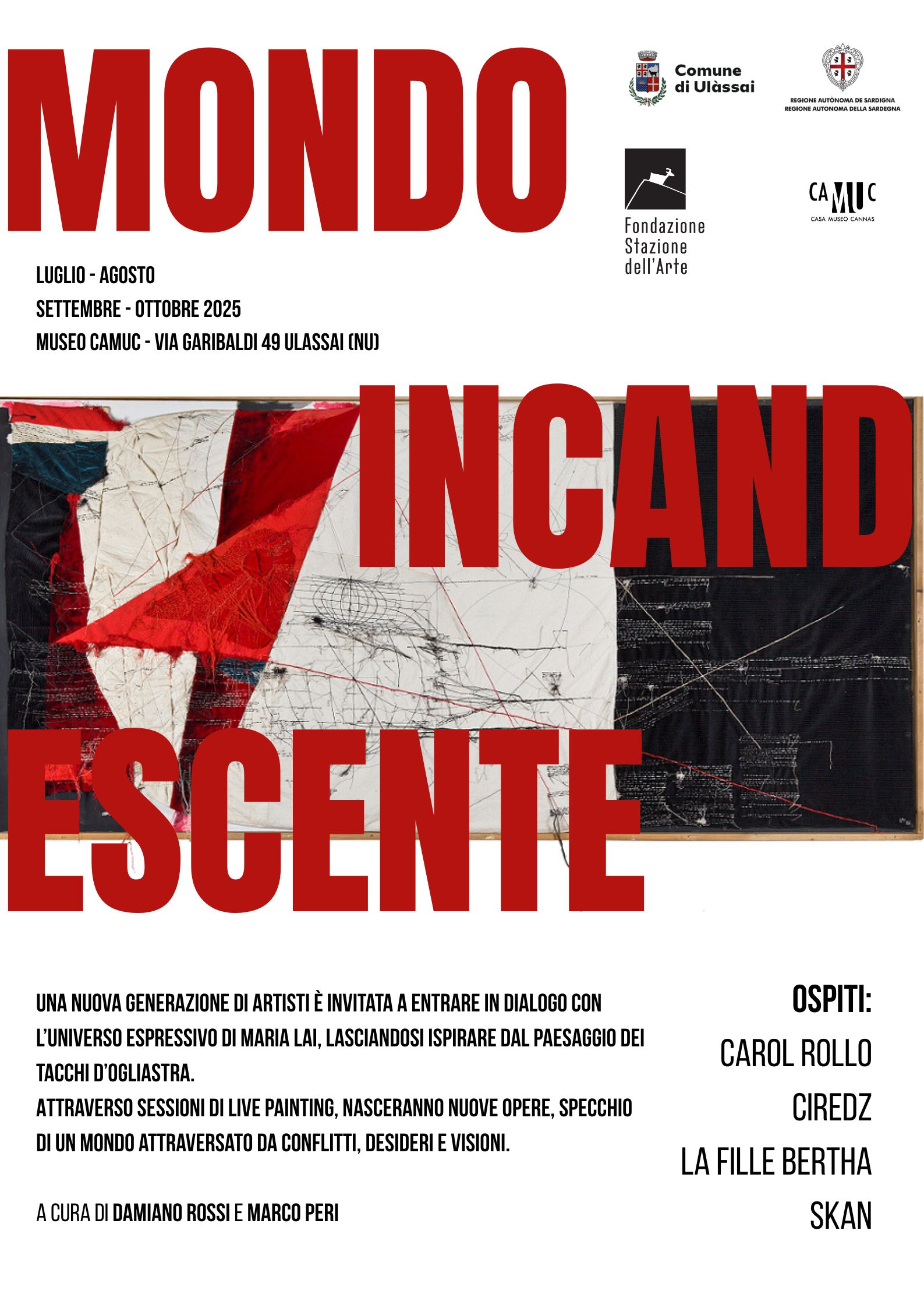 Il ciclo di interventi proseguirà poi da settembre a ottobre con una mostra collettiva, in un programma che intreccia processi partecipativi, confronti artistici e nuove visioni, restituendo al territorio un mondo incandescente di segni, sogni e conflitti.