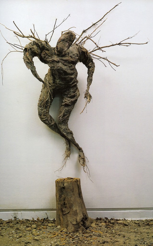 "Il ³trash² ha costituito un tema ³principe², nella storia dell¹arte del XX secolo, ben documentato dalle opere di numerosi artisti che hanno utilizzato proprio gli ³scarti² e i ³rifiuti² per realizzare opere d¹arte. Basti pensare a Tinguely, Switters, Rotella e Beuys. Recuperare i rifiuti attraverso l¹arte significa strapparli al nulla per destinarli a nuova vita e farli sopravvivere in eterno. È questo che fa Anna Santinello, una grande ³manipolatrice² e artefice di straordinarie sculture letteralmente ³tessute² in filo di ferro, di rame o d¹acciaio! È una creatrice di magiche figure realizzate con inutili stracci di stoffa ³sporchi² di residui di colori e rami secchi, con camere d¹aria o vecchie cariole arrugginite. Sono corpi ³frammentati² ma potenti e ³vistosamente in carne²: sono teste, gambe, pance gravide, mani e piedi che esprimono la fatica del vivere il nostro tempo. Le sue figure tridimensionali legate all¹immagine del corpo, selezionate per questa rassegna, nulla hanno a che vedere con il tradizionale ³modellato plastico², pur entrando a pieno titolo nel filone della scultura, essendo, di fatto realizzate e costruite attraverso l¹intreccio di fili metallici" (Marisa Zattini, dal testo in catalogo).