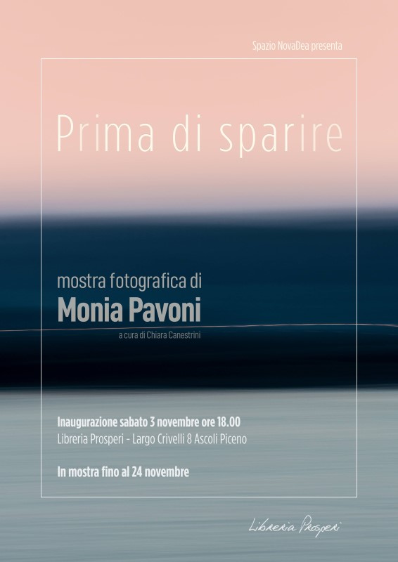 Prosegue la stagione espositiva dello Spazio NovaDea, la galleria all’interno di èquilibri (commercio equosolidale + Libreria Prosperi) nel centro di Ascoli Piceno. La fotografa Monia Pavoni presenta sabato 3 novembre alle ore 18 la sua mostra personale “Prima di sparire”, curata da Chiara Canestrini.