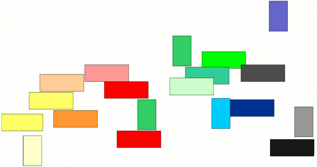 Le opere, a tema libero, ma dalle misure prefissate, sono disposte secondo logiche di trasformazione cromatica in un fluire irregolare e incessante. Intriganti per il loro minimalismo intrinseco diventano quasi un inventario del modo e dei modi di creare con il colore.