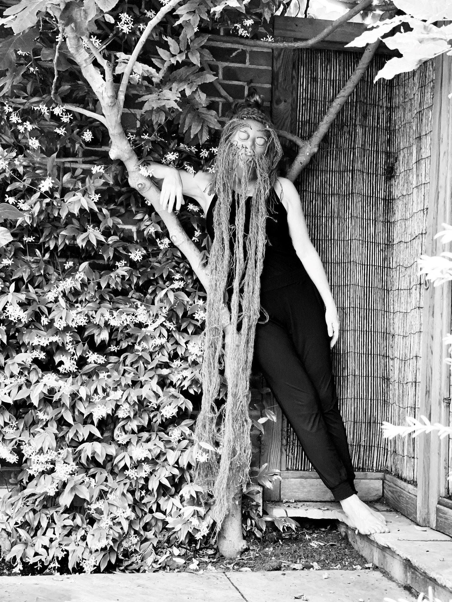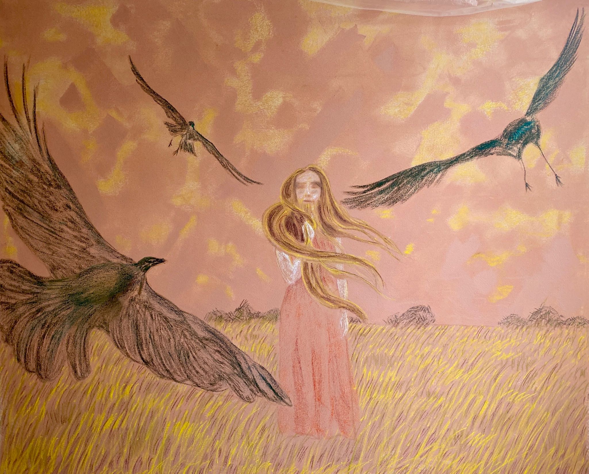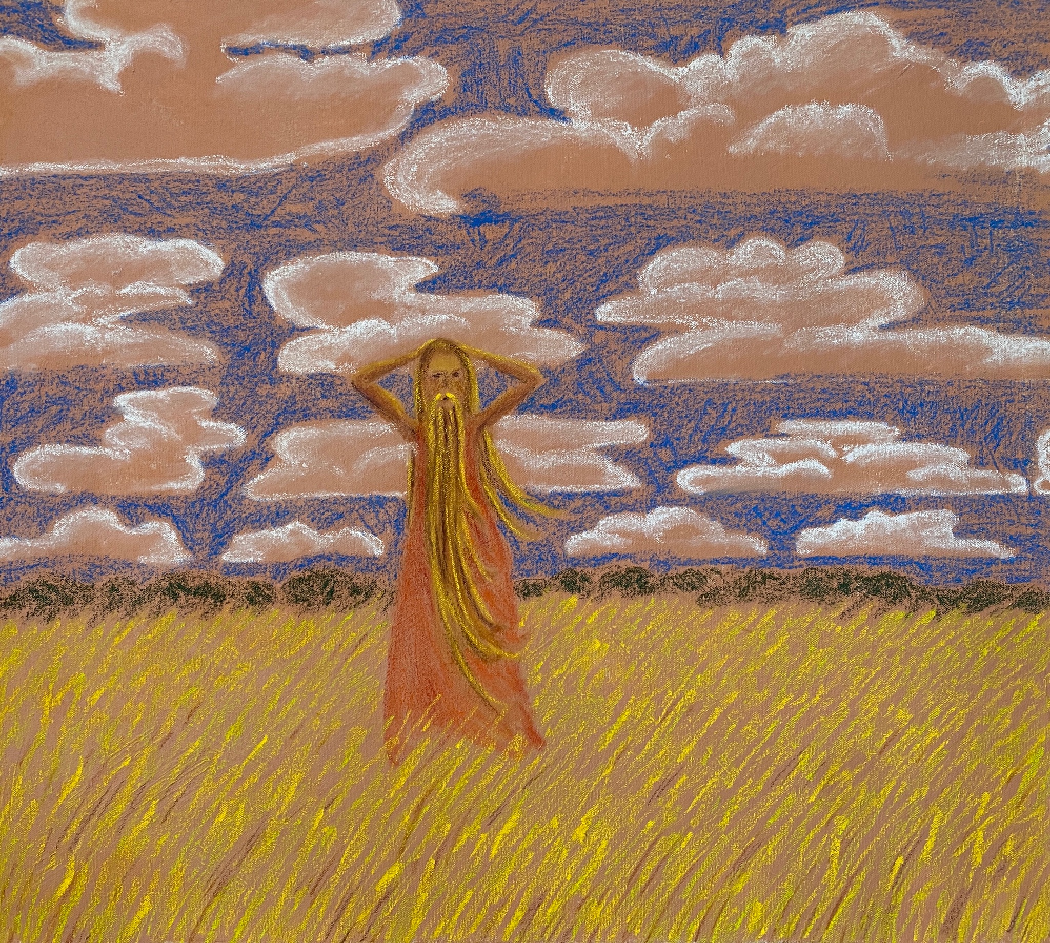 «Questa serie di opere nasce in un bosco antico dove mi sono trovata a indossare una maschera cieca – racconta l’autrice –. Una volta perso il contatto visivo con l’esterno, la mia immaginazione ha preso il volo: chi si avvicina? È un uomo o un cervo venuto a investigare? Sono dei pappagalli quelli appena atterrati sull'albero sopra di me, o è la foresta intorno che si sta trasformando in una giungla? Ero lì per un progetto di registrazione, ma ho capito che ciò che stava accadendo nella mia mente, accesa da quella maschera che mi copriva il volto, era molto più interessante di tutto il resto. Ed è questo che vorrei restituire a chi verrà a trovarmi a Bologna».