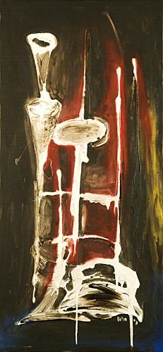 Le sculture esposte sono totem ispirati ai boechin, feticci venerati dai Diolas, oggetti dalle virtù benefiche che proteggono da infortuni, malattie, morte e siccità, forgiate dall’artista in metallo saldato e successivamente arrugginite con tecniche particolari per metterne in rilievo l’autenticità. I dipinti sono realizzati mediante un collage di catrame e pigmenti, che conferiscono alla tela il colore scuro dell’”uomo nero” e delle maschere tradizionali, utilizzate per simbolizzare l’incarnazione degli spiriti e dei geni tutelari.