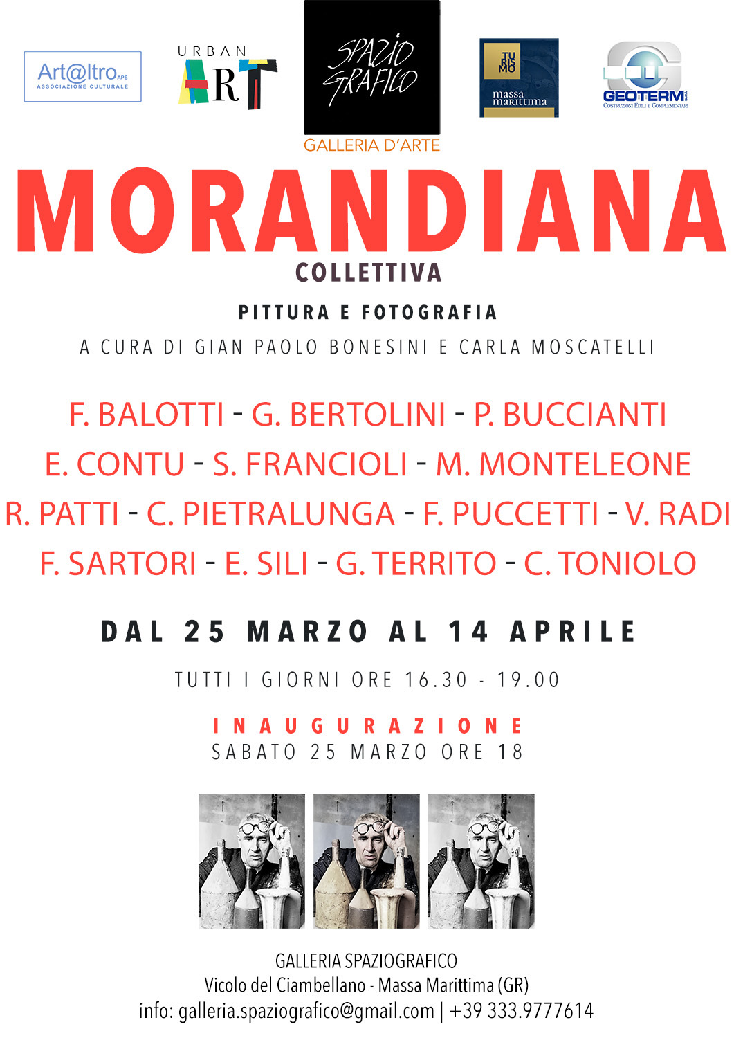 Il fotografo Luigi Ghirri, in collaborazione con lo scrittore Giorgio Messori, ha pubblicato due celebri volumi dedicati all’incontro con Morandi: Atelier Morandi (1992), un’ispirata ricerca fotografica nell’atelier di Via Fondazza, a Bologna, e nella residenza estiva di Grizzana; e poi Il senso delle cose (2005), quattrocento scatti in cui si manifesta tutto l’amore folgorante dei due artisti per gli oggetti semplici, sfaldati nella luce mistica e insieme reale del mondo, quasi a farsi forme possibili dell’assoluto. Da questa ricerca fotografica nasce l’idea della mostra MORANDIANA: gli artisti con le loro opere creano un dialogo con gli stessi oggetti amati da Morandi.