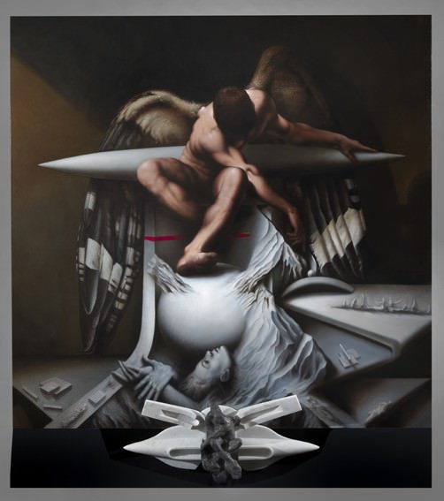 L’abbinamento della pittura e della scultura nella tela è un fatto straordinario, che richiede formazione, tecnica, capacità differenti. “E’ necessaria, inoltre –racconta Moreno Bondi- tanta fatica fisica quando si realizzano le opere in proprio, senza affidarle (come solitamente accade) ad un laboratorio. Il connubio delle due arti concettualmente appartiene all’eredità del Barocco. Le Pale d’altare seicentesche, incorniciate dagli angeli in marmo, sembrano vere e proprie istallazioni, in cui pittura e scultura sono entrambe protagoniste”.