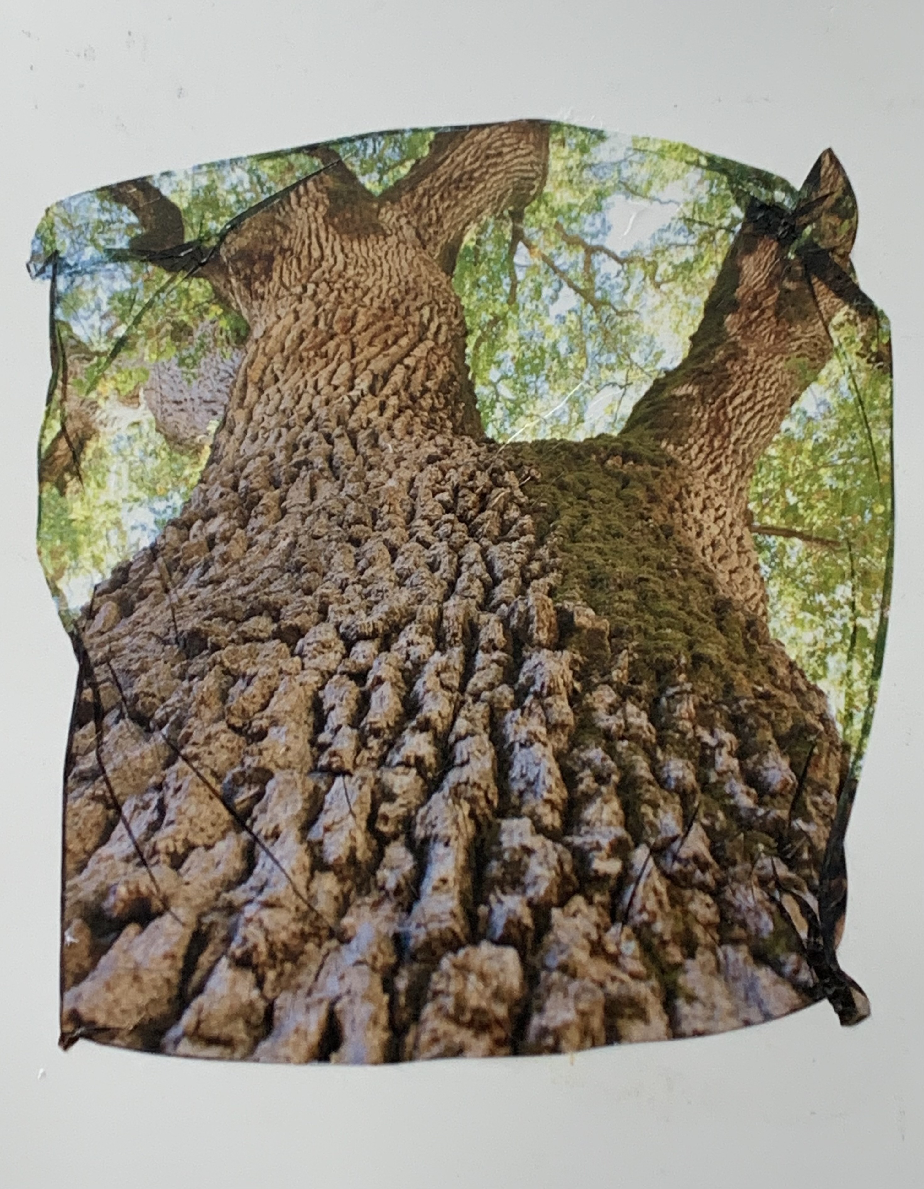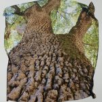 La visione dall’alto del paesaggio rielaborata in un surreale sovrapporsi di linee geometriche curve e coloratissime di Stephen Johns, si contrappone alla visione dal “basso” degli alberi che Linda Kunik incontra nei suoi trekking nel Sequoia National Park in California dove la struttura della corteccia degli alberi diventa protagonista assoluta della sua indagine “ravvicinata” della Natura.