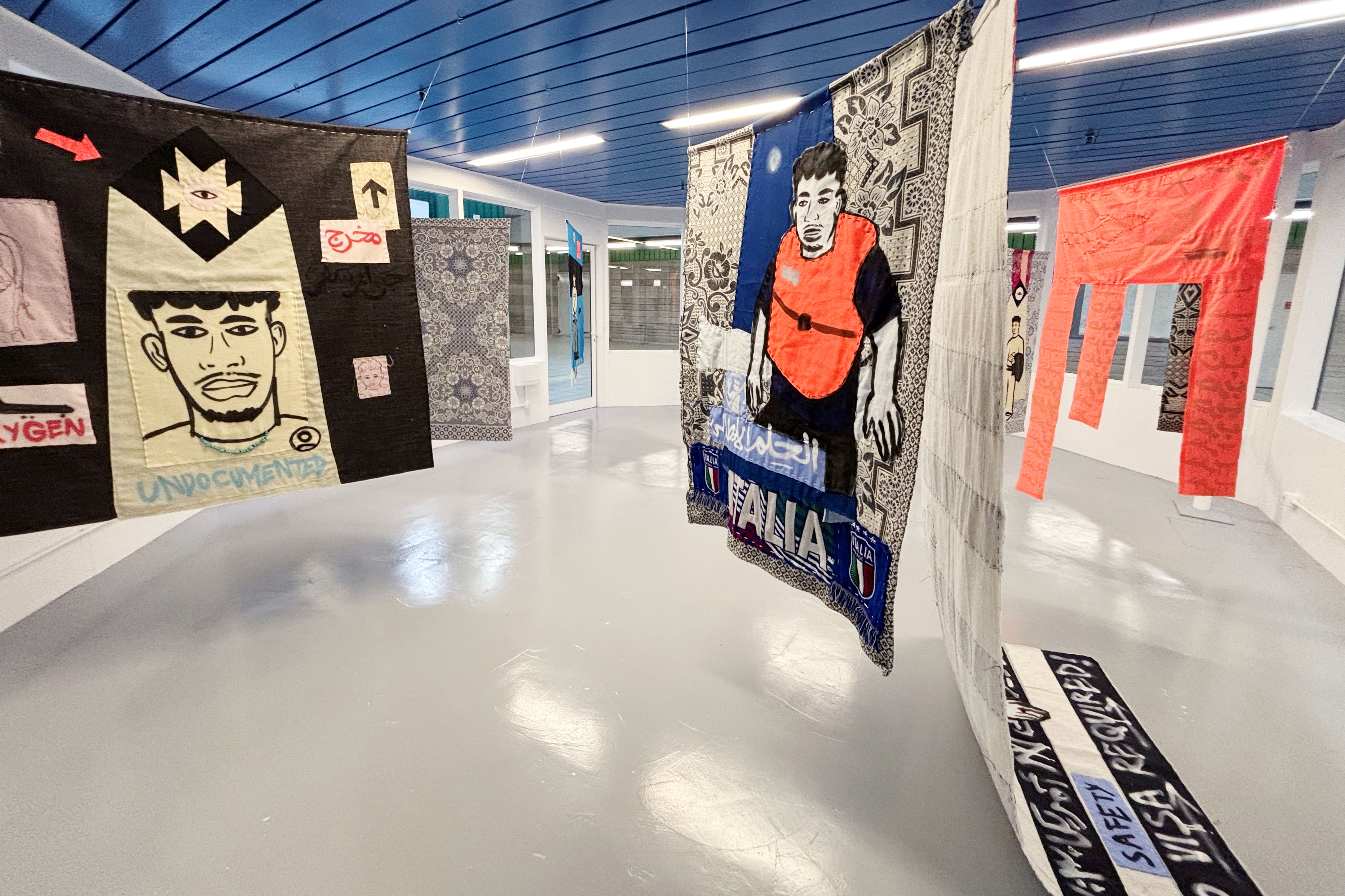 Departures / مغادرون è un’opera audace che interroga profondamente le nostre percezioni sui confini, il privilegio e l’esperienza umana. Attraverso un progetto immersivo, gli spettatori sono spinti a riflettere sull'assurdità delle barriere e dei confini geografici e politici. La mostra si inaugura con una performance in cui il pubblico è invitato a confrontarsi con l’artista, chiuso in una scatola trasparente che rappresenta la reclusione e le restrizioni - non sempre visibili - vissute da chi ha bisogno di visti per superare i confini. In questo contesto, Mosa diventa una metafora vivente delle limitazioni imposte non solo alla libertà di movimento, ma anche al diritto di lasciare situazioni difficili in cerca di un futuro migliore. La teca sarà circondata da tessuti decorati con le storie di chi è costretto a rimanere nel proprio Paese, non solo per via di conflitti, ma anche a causa delle difficoltà nell’ottenere visti e permessi. Queste barriere limitano opportunità e indipendenza, evidenziando le sfide quotidiane di chi, pur volendo costruire un futuro altrove, si scontra con ostacoli burocratici e politici. Il modo per superare confini e divieti è partire a bordo della Unprivileged Airways, una compagnia aerea che cambia le regole, scardina le norme, e permette, a chiunque lo desideri, di viaggiare.