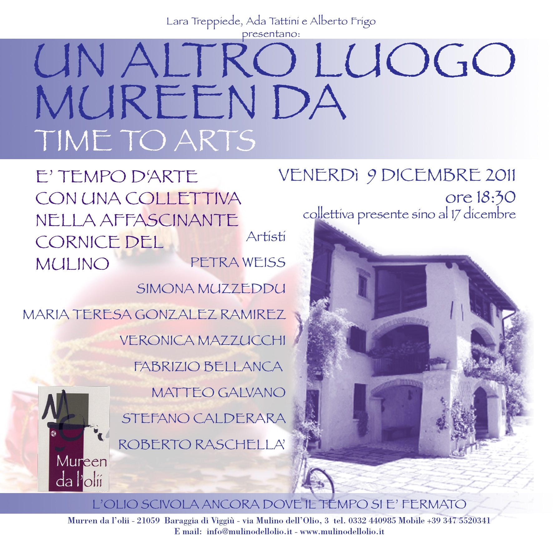 In occasione dell’inaugurazione della mostra è previsto un aperitivo natalizio nella magica atmosfera del Mulino dell’olio.