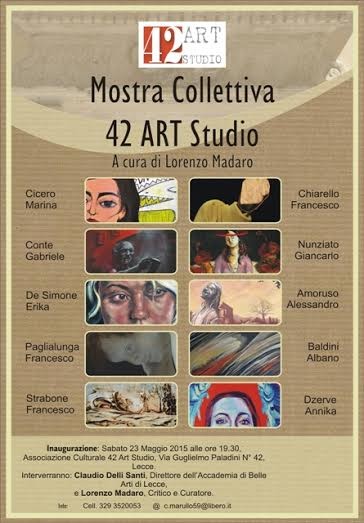 Il 23 Maggio alle 19.30 apre le porte al pubblico l'associazione culturale 42 Art Studio, con sede in via Guglielmo Paladini N° 42, nel pieno centro storico di Lecce a pochi passi dal Teatro Romano e da Piazza Duomo.