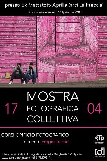 Esposizione fotografica degli studenti dei corsi tenuti nel 2015 dal fotoreporter Sergio Tuccio presso lo studio Opificio Fotografico di Aprilia. Gli scatti dei circa 20 allievi rimarranno esposti dal 17 aprile a fine maggio, ruotando ogni due settimane. I generi fotografici trattati durante i corsi – ritratto, reportage, travel, still-life e glamour – trovano corpo nelle immagini in mostra, frutto di lavori personali di ogni allievo