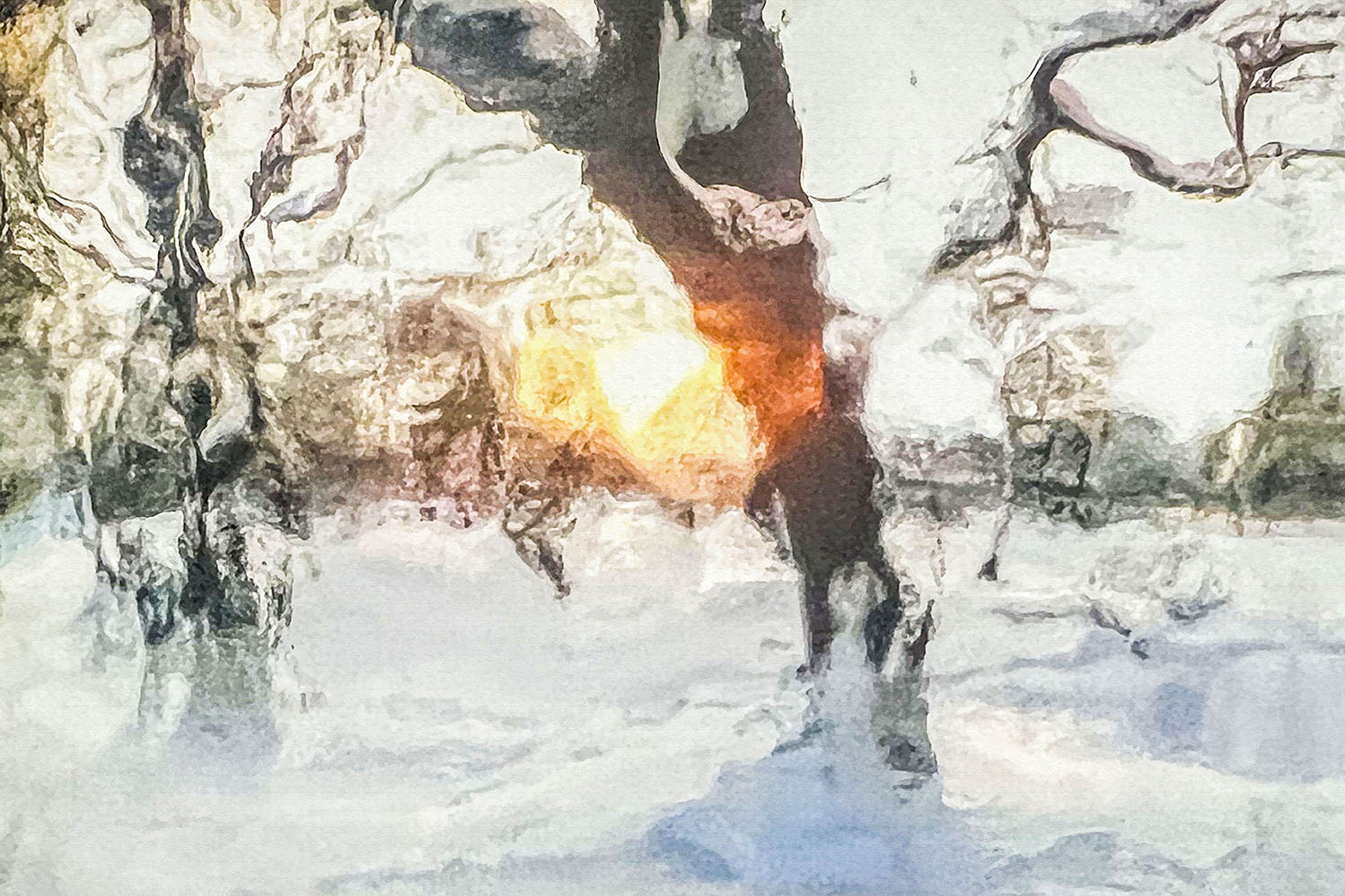 Il percorso si apre con il ciclo L’inverno dell’anima, una serie di una decina di immagini in cui Mercadante restituisce all’inverno un valore profondo e rigenerativo. Tradizionalmente associata alla fine, questa stagione diventa per l’artista un passaggio necessario, carico di potenziale. Attraverso squarci di luce e atmosfere evocative, l’artista trasforma la malinconia in speranza, mostrando presenze nascoste e una natura in attesa di rinascere. I colori, dalla neve alla luce del tramonto, rivelano un inverno ricco e prezioso.