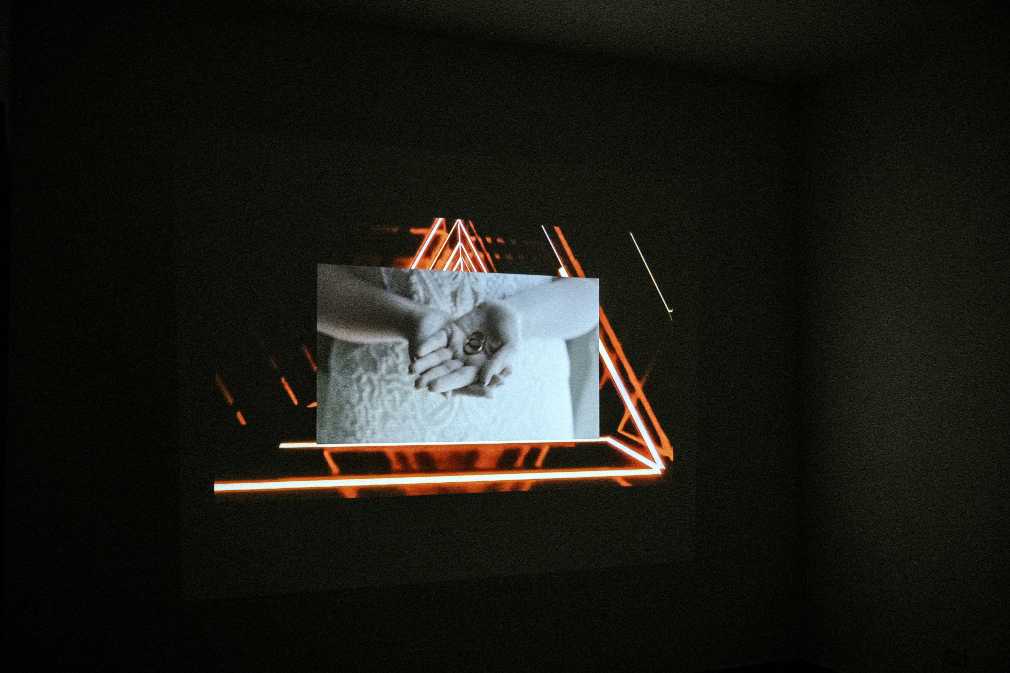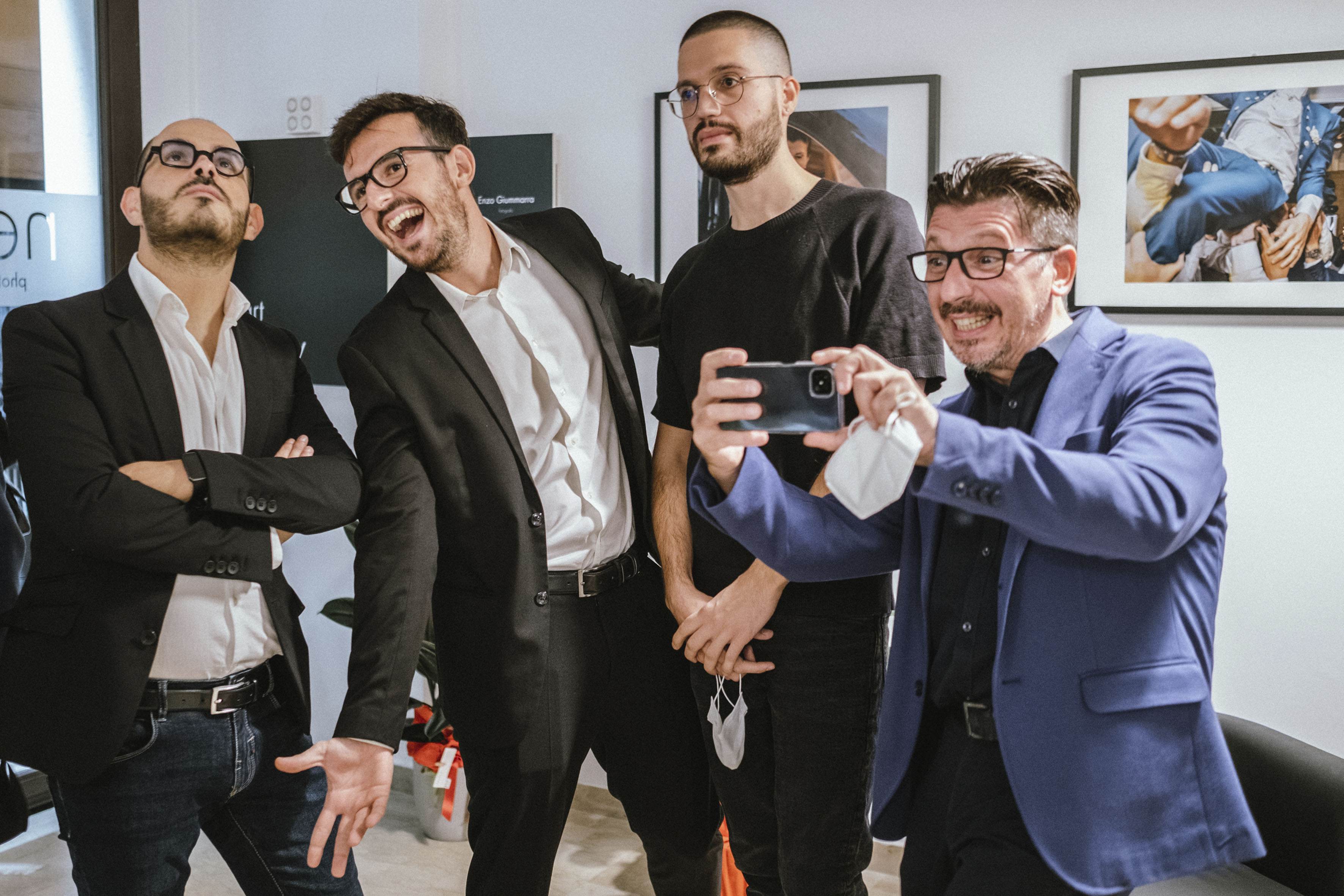Le mucche e il processo di allevamento, che non cambia mai; i martelli marcianti di The Wall dei Pink Floyd, che ci raccontano quanto tendiamo ad andare sempre verso la stessa direzione, senza mai avere il coraggio di osare, di cambiare strada, di diversificarci dalla massa. Le persone presenti alla mostra si mostravano seriose durante la visione del video, forse perchè in mezzo a quegli spezzoni quasi ipnotici ed in in loop vi erano anche le mani di una sposa con in mano gli anelli, e vedere quella foto in mezzo alla ripetitività fa comprendere quanto i matrimoni possano diventare mera scenografia, atti impersonali in cui si cerca lo scatto migliore senza cambiare mai angolazione, senza mettersi a nudo essendo veramente se stessi lasciando fluire la poetica umana. E’ un grido di rivoluzione quello fatto dai fotografi Enzo Giummarra, Claudio Castilletti e Salvo Inghilterra, con la partecipazione di Angelo Giummarra, per far sì che ogni sposa, ogni sposo e ogni famiglia nei giorni più importanti della propria vita, possano liberarsi dal consueto assaporando ogni momento senza pensare di apparire. Senza cestinare le foto migliori: quelle in cui non conta l’ abito o l’ inclinazione del viso, ma in cui viene immortalata la Verità di Noi stessi.