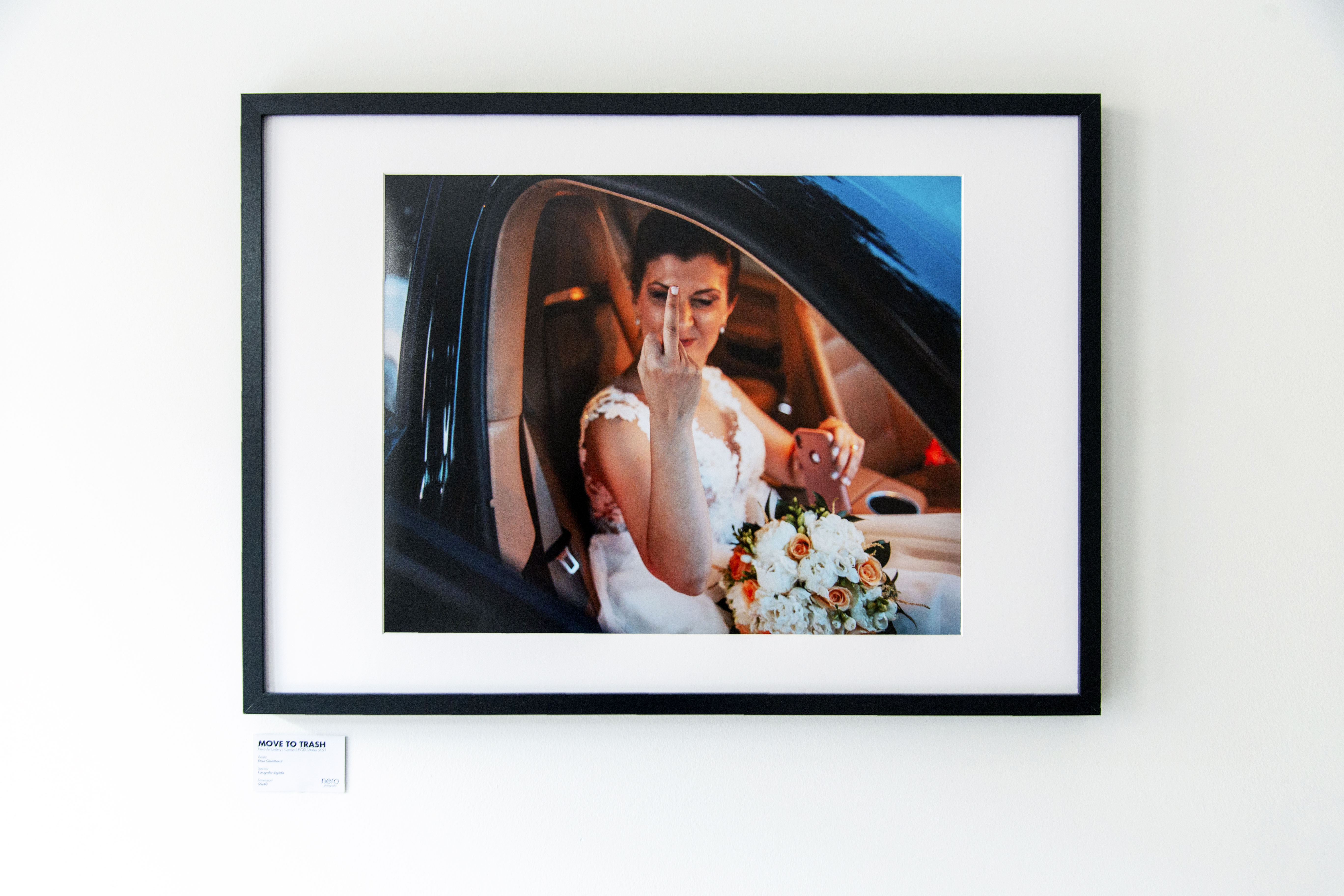Solitamente una mostra fotografica è accompagnata da musica delicata e strumentale, da bicchieri sontuosi di vino frizzante e dal silenzio pensante della gente. Perchè si sa, si ricerca la perfezione, anche quando questa appare rarefatta. Invece ieri sera, giorno 8 ottobre 2021, grazie all’ inaugurazione dell’ Art Gallery di Nero Photografy a Comiso con “Move to Trash” si è avuto un ribaltamento della convenzionalità: il serismo ha lasciato spazio ad una pungente ironia che ha dato modo a molte donne adulte, e non solo, di lasciarsi andare in timide risate nell’ osservare la foto che ritrae una bellissima sposa fare un gesto non proprio casto e puro. E poi la musica, un brano Danceelettronico che rompe tutti gli stereotipi di qualsivoglia presentazione fotografica o di arte in genere, ha catapultato il pubblico in un mondo poco esplorato, quale lo stile fotografico di Martin Parr e Ian Weldon, a cui Move to Trash si è ispirato.