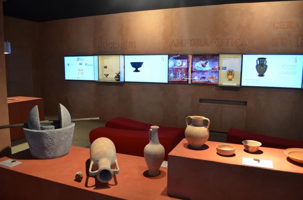 un percorso esperienziale, interattivo che, attraverso mappe parlanti, filmati e ricostruzioni tridimensionali, risponde alla curiosità su cosa mangiavano i nostri antenati ma soprattutto attraverso quali vie e in che modalità quei cibi arrivavano sulle loro tavole.
