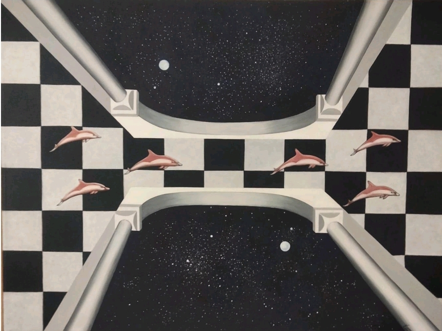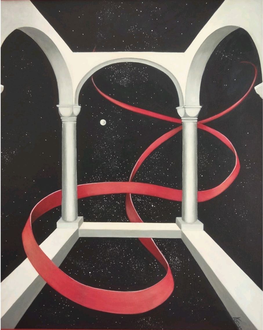 E’ la 4a mostra della rassegna mensile Bollicine con Arte. La pluralità di mondi simultanei è rappresentata attraverso geometrie ribaltate e illusioni prospettiche che ricordano le ricerche di M. C. Escher, che danno vita a luoghi metafisici sospesi nello spazio infinito.