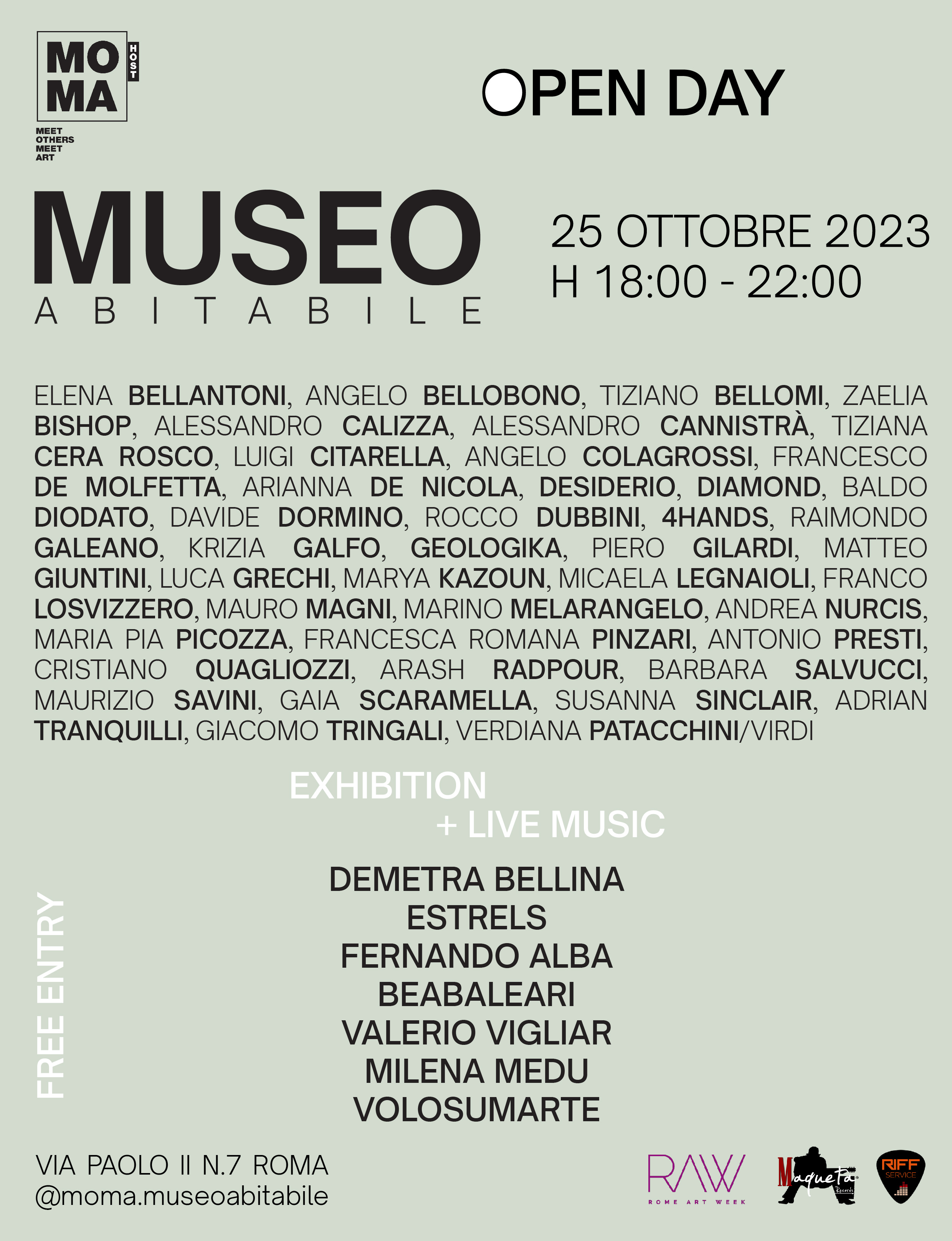 Il M.O.M.A. HOST MUSEO ABITABILE in occasione della Rome Art Week, anche quest’anno apre le porte per visitare la collezione che i suoi spazi ospitano.