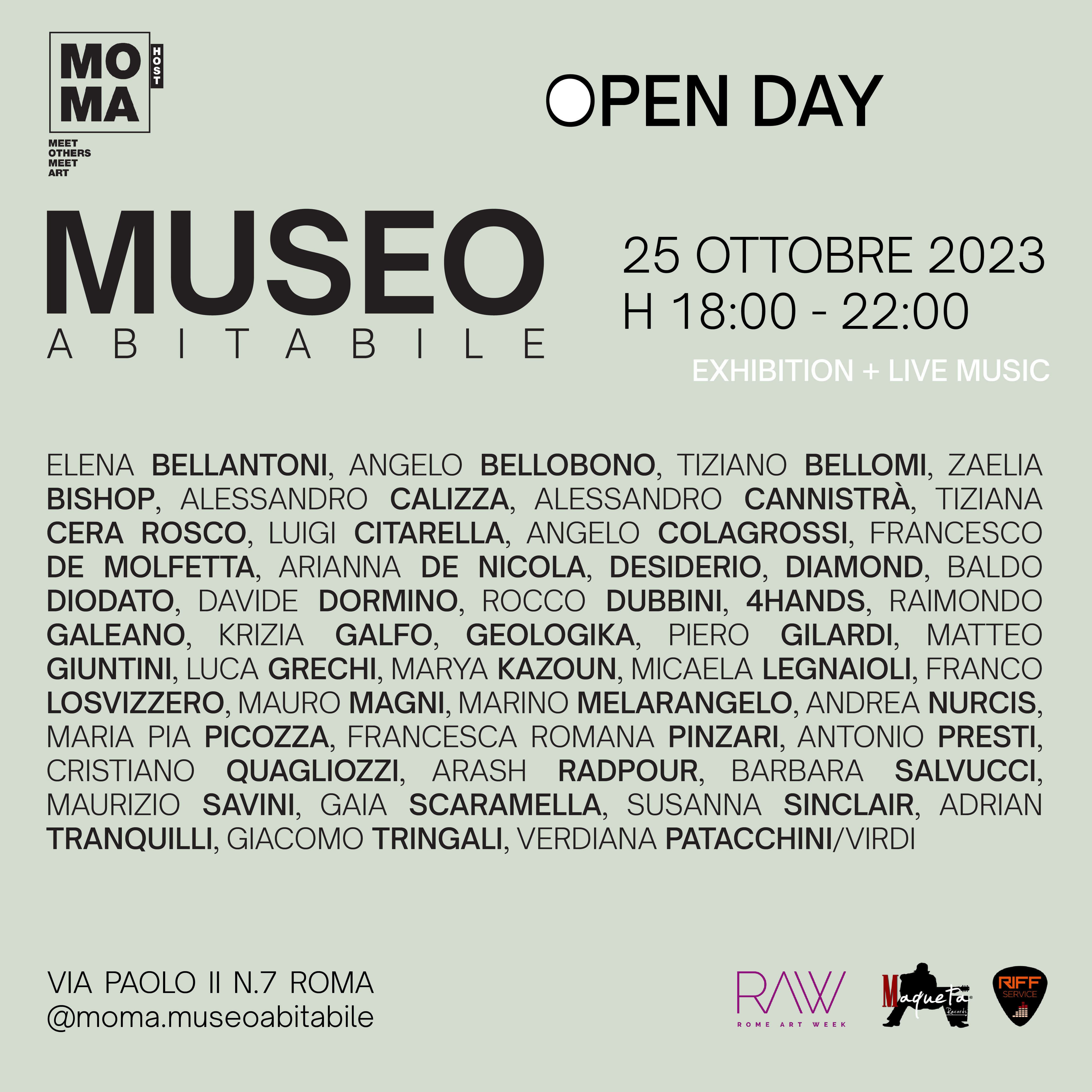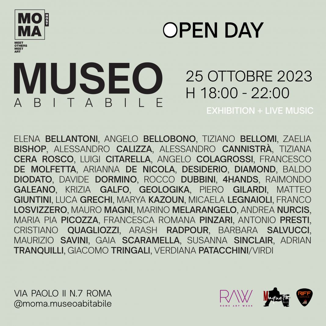 Il M.O.M.A. HOST MUSEO ABITABILE in occasione della Rome Art Week, anche quest’anno apre le porte per visitare la collezione che i suoi spazi ospitano.