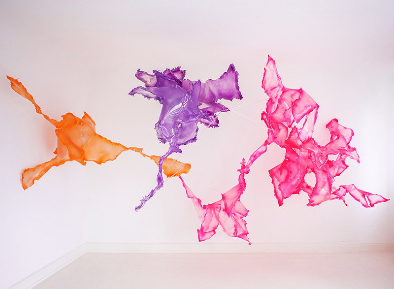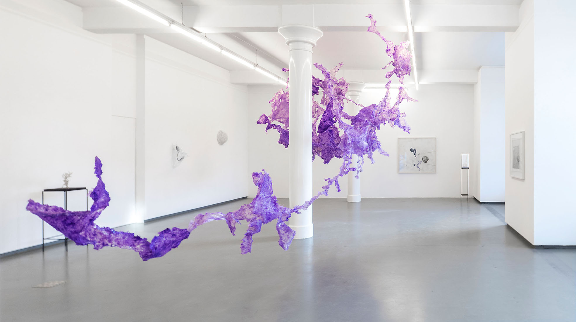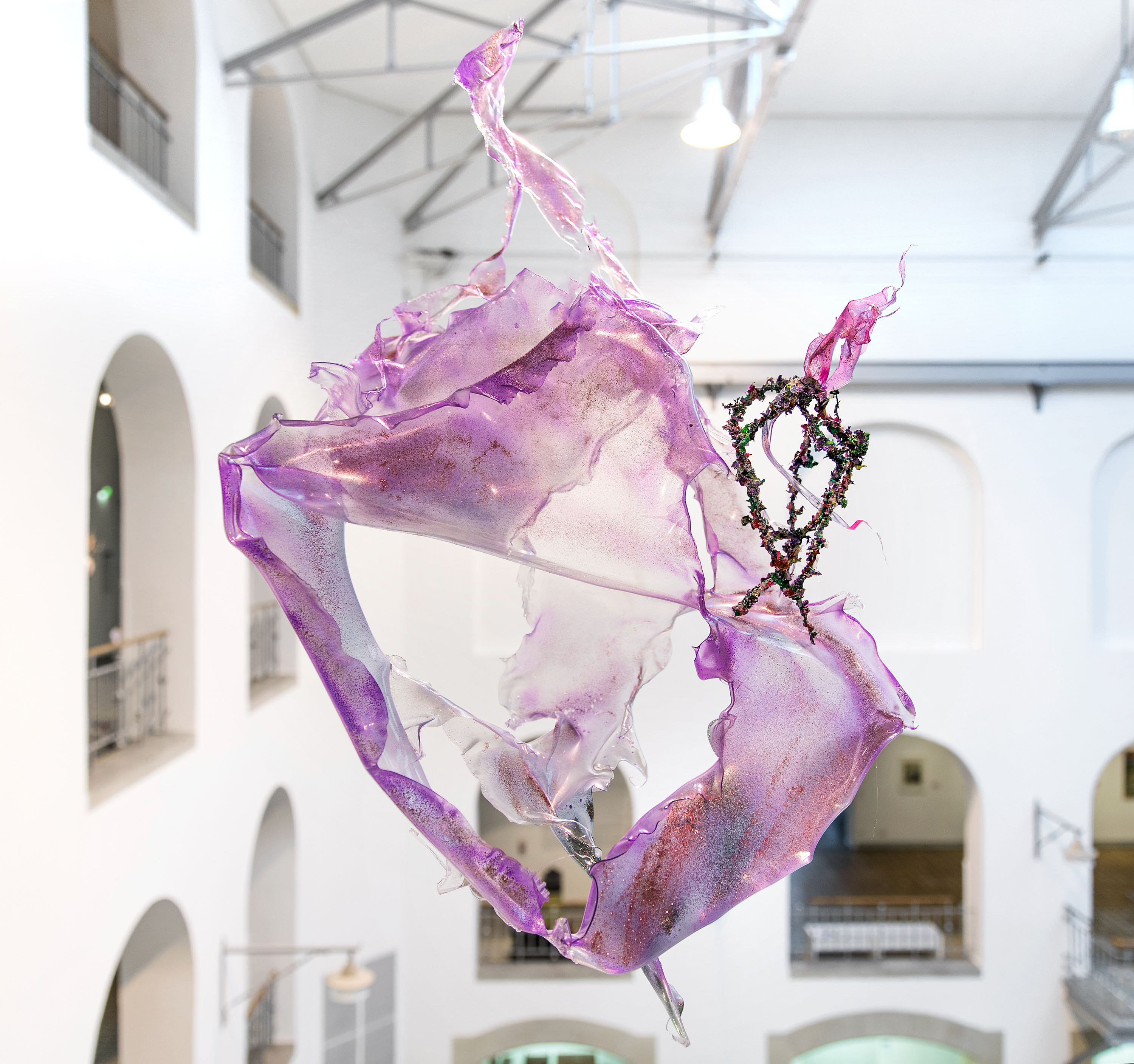 All'interno dello spazio espositivo, Aljoscha combina le sue opere d'arte in un superorganismo, ricomponendo e ricombinando i sogni più antichi e le speranze della nostra specie. L'installazione, multicolore eppure trasparente, si estende dal soffitto in un'eterea rete di intrecci che invita alla meraviglia e alla contemplazione.