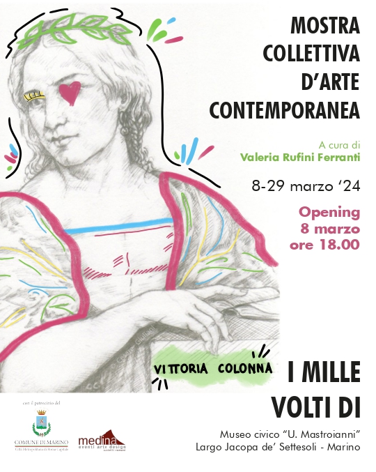 In occasione della ricorrenza della festa della donna, l’8 marzo 2024, con il patrocinio del Comune di Marino, Medina Art Gallery Castelli Romani organizza un’esposizione collettiva d’arte contemporanea nel periodo 8-29 marzo 2024, presso il Museo Civico “U. Mastroianni”, dedicata a Vittoria Colonna