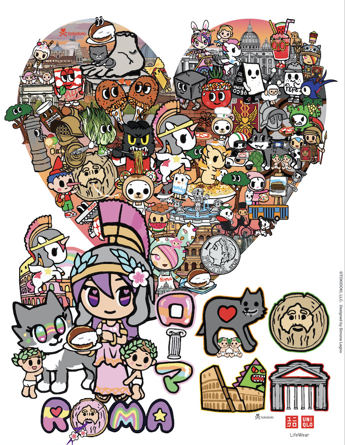 Un universo composito e colorato, che abbraccia opere su tela, murales - la produzione più artistica di Simone Legno - ma anche abbigliamento, accessori, oggetti, in nome di un concetto creativo e positivo che non conosce confini e che ha portato Tokidoki a collaborare con brand come Karl Lagerfeld, LeSportsac, Barbie, Onitsuka Tiger, Sephora, Marvel e più recentemente Uniqlo, in occasione dell’apertura dello store a Roma.