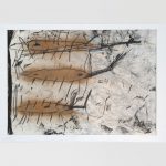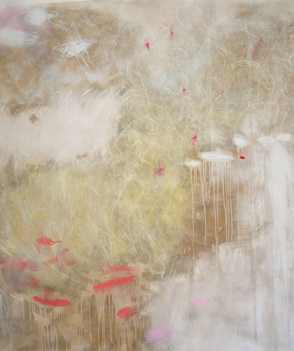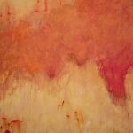Al limite dell’evanescenza, lascia intravedere bagliori dorati, isole di rosso dai confini indecisi, soglia oltre la quale la forma si perderebbe. Un altro approdo è previsto: le coordinate cartesiane si trasformano in tracce. Non segno di un nuovo alfabeto ma inaspettata geometria umana, sintesi del tempo vissuto.