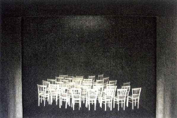 E il compositore Rocco Abate sottolinea altri aspetti del suo lavoro: ”Al “Concerto” di Nadia Nava il Silenzio si ”ascolta” provenire da una visionarietà immaginifica di stupefacente ricchezza la cui rappresentazione iconografica lascia senza parole e il Suono si “vede” raggelato e sospeso nella distanza che passa fra la mano e un tasto, tra la mano, lo spartito e la bocca di un corista fuori scena…Smarrimento, Solitudine, Silenzio…Di cos’altro parlano allora le “Sedie” bianche e vuote, “scolpite” nel buio di un fondale infinito sulle quali Nadia mette a sedere, senza acclararlo ma suggerendone il senso nascosto le tre S S S?