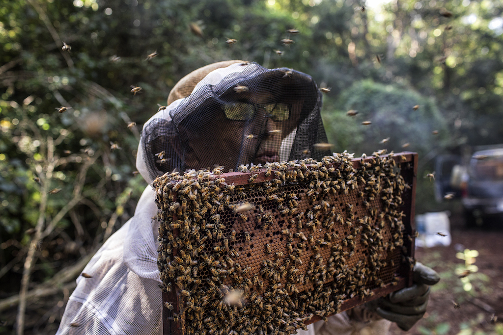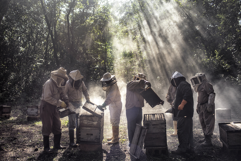 Le fotografie, esposte per la prima volta in Italia, mettono in evidenza il pericolo che sta correndo un equilibrio legato a api e miele durato millenni, unitamente alla salute delle popolazioni dello Yucatan, causato dai disboscamenti per le coltivazioni di soia OGM.