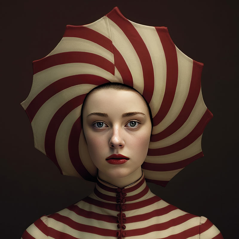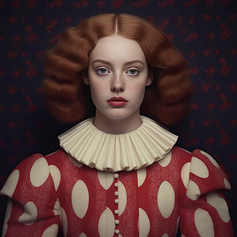 Volti di dame che guardano oltre, tra chiaroscuri e memorie rétro, apparentemente uscite da un sogno e sospese in un tempo che non è più il nostro ma nemmeno del tutto passato. Dame con abiti sontuosi che fondono elementi rinascimentali e barocchi al pop contemporaneo. I loro volti sono perfettamente simmetrici, impassibili, spesso incorniciati da colletti fiamminghi, copricapi surreali o curiosi tessuti che ricordano lana, plastica, metallo o carta crespa. Sono oltre trenta, e sono mute… ma non per sempre. Naima, che attraversa i confini dell’intelligenza artificiale con la delicatezza di chi si interroga e sperimenta, ha generato in questi ultimi tre anni un vero e proprio esercito di “icone” sintetiche, frammenti di una bellezza dimenticata. E per questo progetto ha fatto un passo ulteriore, ha dato loro una voce. A noi il ruolo di farle cantare.