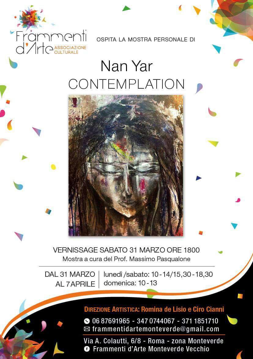 Frammenti d’arte Monteverde Vecchio ospita dal 4 al 27 marzo 2018 la mostra dell’artista belga Nan Yar curata dal Prof. Massimo Pasqualone. La mostra sarà inaugurata Sabato 31 Marzo alle ore 18:00. Le opere rimarranno in esposizione fino a Sabato 7 Aprile.