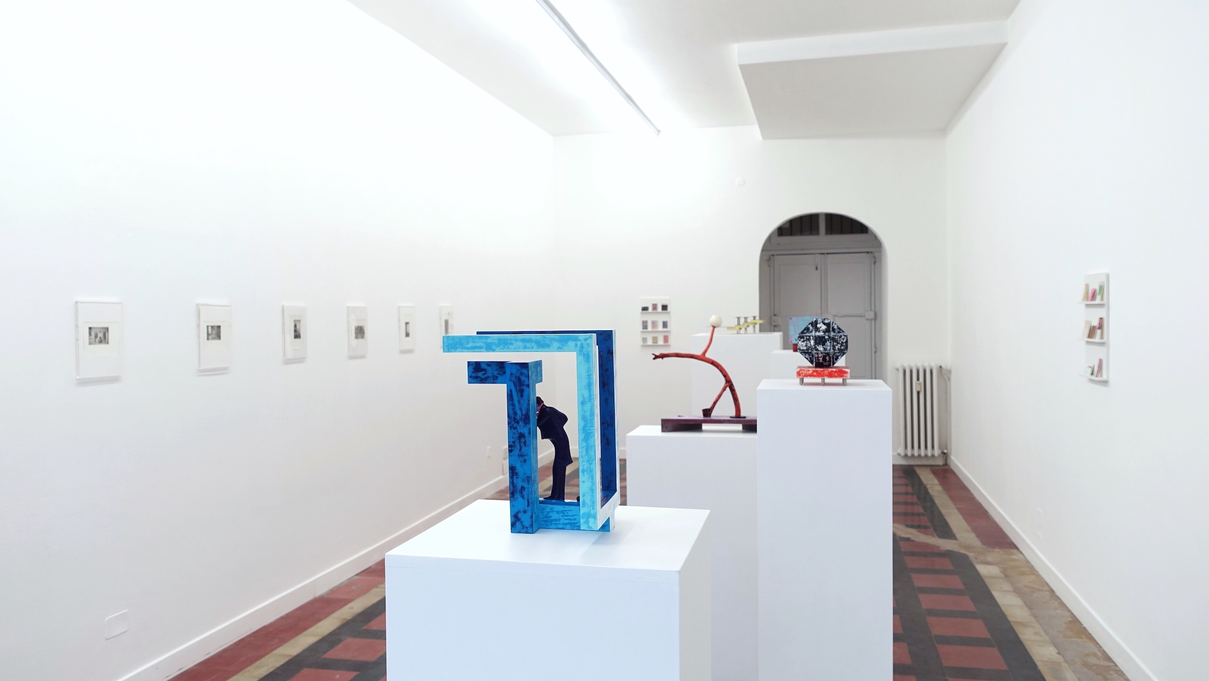 Per la mostra Bibliothèque, Julien Carreyn ha prodotto alcuni scaffali a parete, di legno bianco, sui quali ha disposto piccoli oggetti pittorici come fossero psichedeliche carte assorbenti. Carrey presenta anche una nuova serie di lavori fotografici eseguiti con stampa a barre. Tra i ricordi sfocati degli armadietti da bagno e le pagine residue di certi libri illustrati d’altri tempi, gli oggetti svaniscono in favore dei loro contenuti, come immagini intermittenti che si posano su linee impercettibili.
