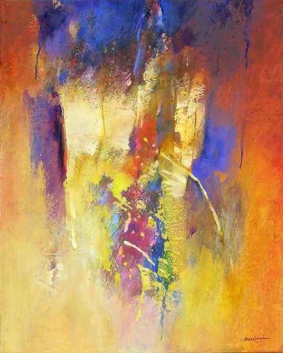I lavori dei due artisti in mostra ben si prestano ad esprimere questi concetti attraverso la pittura e le terre plasmate: il linguaggio astratto di Marco Bozzini appare come una visualizzazione cromatica di immagini che si sono impresse nella coscienza, consolidando la propria esistenza nella durata di un ricordo e amplificando la propria carica espressiva nello sguardo dello spettatore. Le accensioni di luce, la materia pittorica a tratti grezza, altre volte più levigata, la sapiente alternanza di zone chiare e zone d'ombra caratterizzano l'ultima produzione dell'artista; la specifica carica poetica che ne deriva risulta particolarmente comunicativa per la capacità di attingere sia al mondo dell'esperienza, sia alla componente emozionale, unificate nel colore.