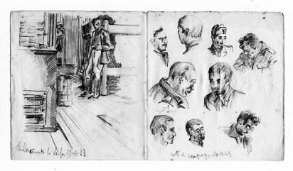 La mostra è composta da più di 100 disegni, 85 su fogli sciolti e una ventina impaginati su notes e quaderni, con scritti e appunti del capitano degli alpini Natale Borsetti