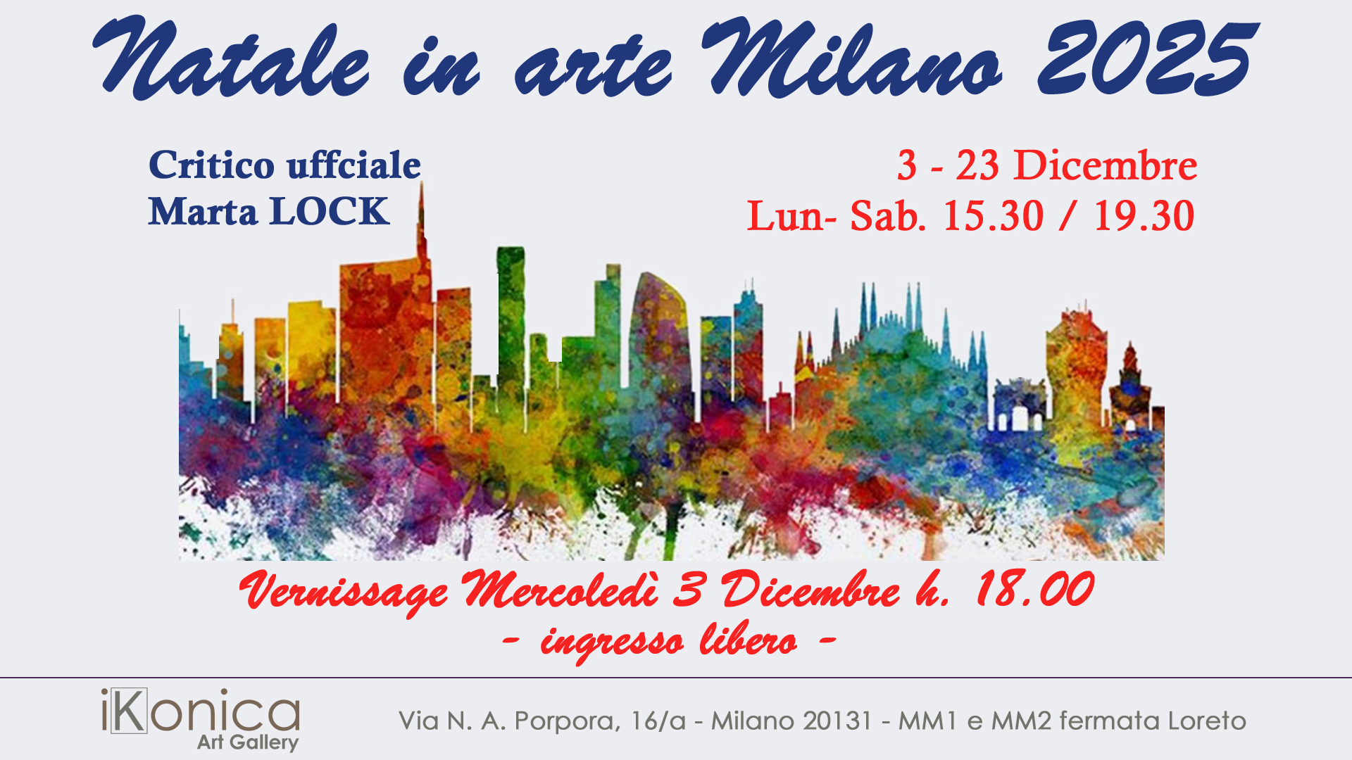 “È nell’ambito della vivacità espressiva del passato e dell’attitudine di Milano ad accogliere, e a volte persino lanciare, le innovazioni artistiche più recenti, che ho scelto di organizzare questa edizione di Natale in Arte 2025 per mostrare al pubblico abituale della galleria iKonica i talenti emergenti e più affermati che stanno compiendo un interessante percorso espositivo in Europa e nel resto del mondo, senza dare loro un tema espositivo che avrebbe vincolato i partecipanti all’immaginario natalizio, bensì lasciandoli liberi di mostrare ciascuno il proprio stile nella sua più spontanea autenticità. Non solo, l’esposizione sarà divisa per stile artistico così da dare modo ai visitatori e ai collezionisti di immergersi e di scoprire l’interpretazione che ogni autore dà al linguaggio espressivo di appartenenza, sulla base del retaggio culturale della nazione da cui proviene e anche della singola sensibilità che contraddistingue ognuno di loro.”