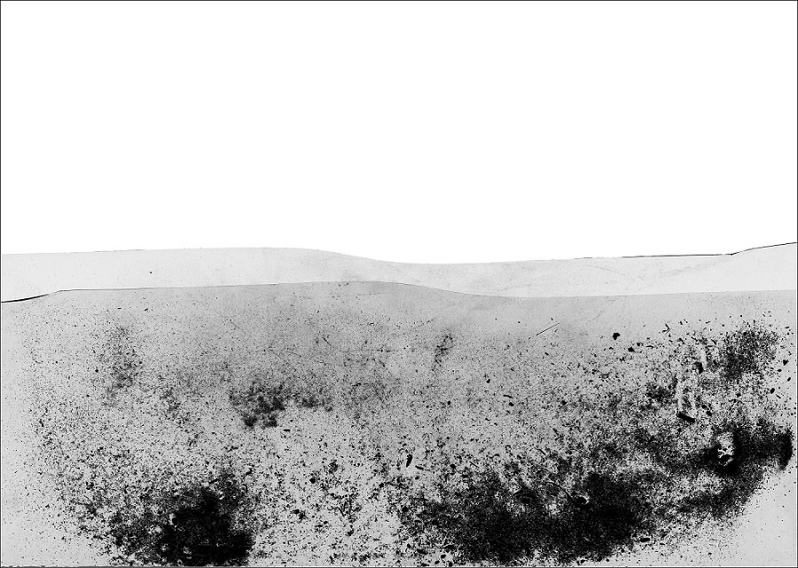 I due elementi, la polvere e la fotografia si sovrappongono, guadagnando alternativamente e con forza lo spazio visivo, generando un problema di energie contenute, protese verso uno spazio di coesione: la