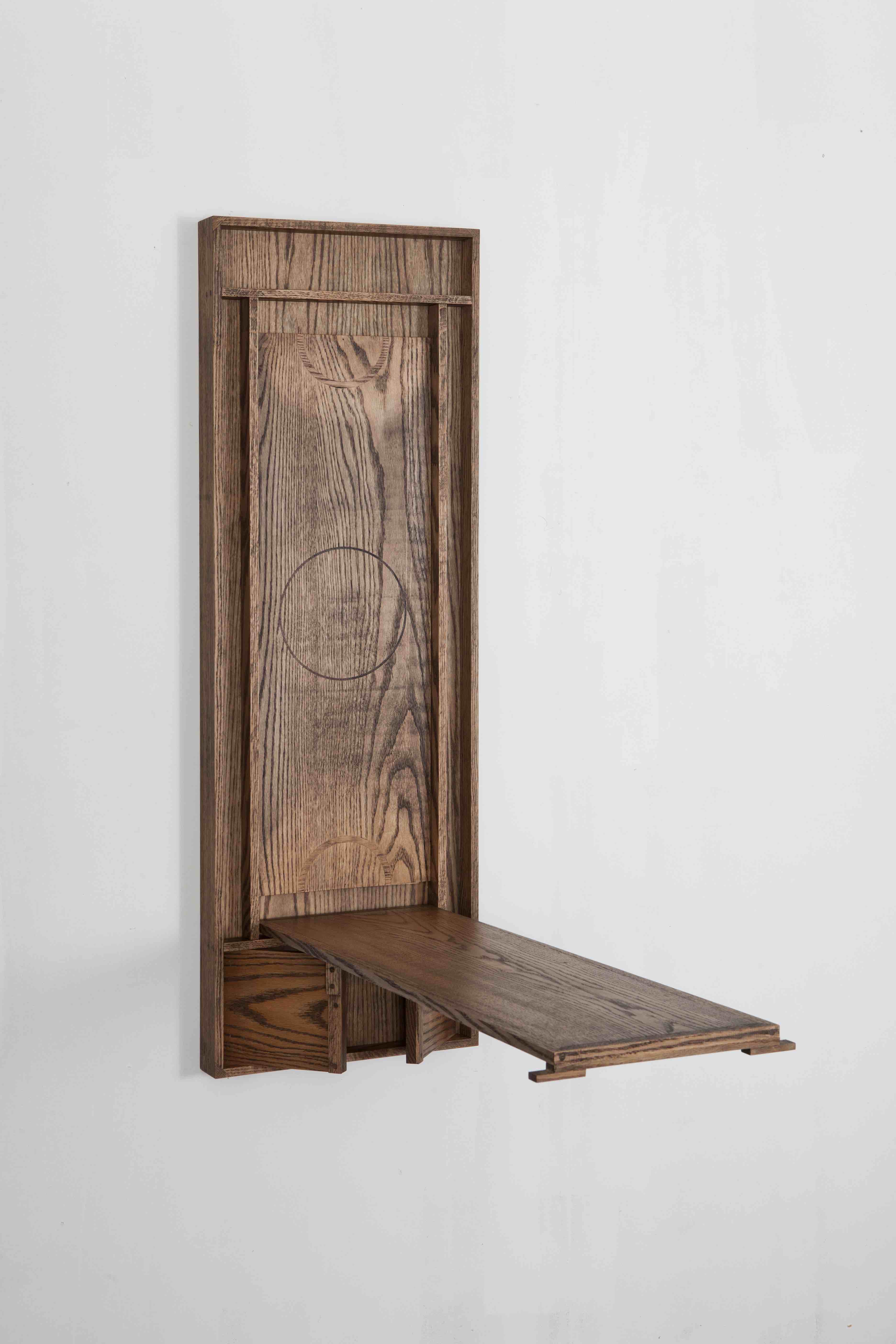 Archi, cerchi e frecce sono segni inseriti nell’opera con l’intarsio a mano. Ogni opera, densa di dettagli, esprime la propria raffinatezza nella minuziosità del lavoro. In questo contesto il disegno diventa funzionale alla cornice e non viceversa, trasformando l’opera in un basso rilievo a muro.