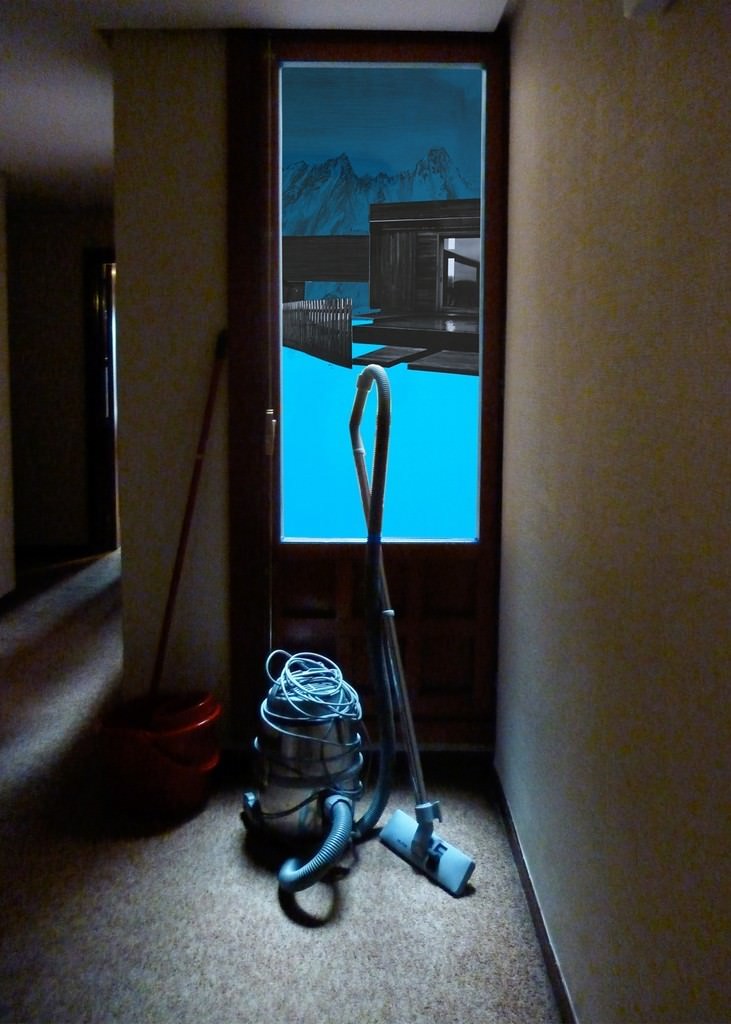 Nathalie Contenay ricorre a sperimentazioni extra-pittoriche, veri e propri “foto-rilievi”, fotografie di corridoi, introspezioni di spazi privati, camere, atri di Hotel. Le immagini vengono tagliate e rimontate in piani successivi e differenti, per ottenere spazi tridimensionali, illusori, che svelano il sottile punto di vista voyeuristico dell’osservatore.”